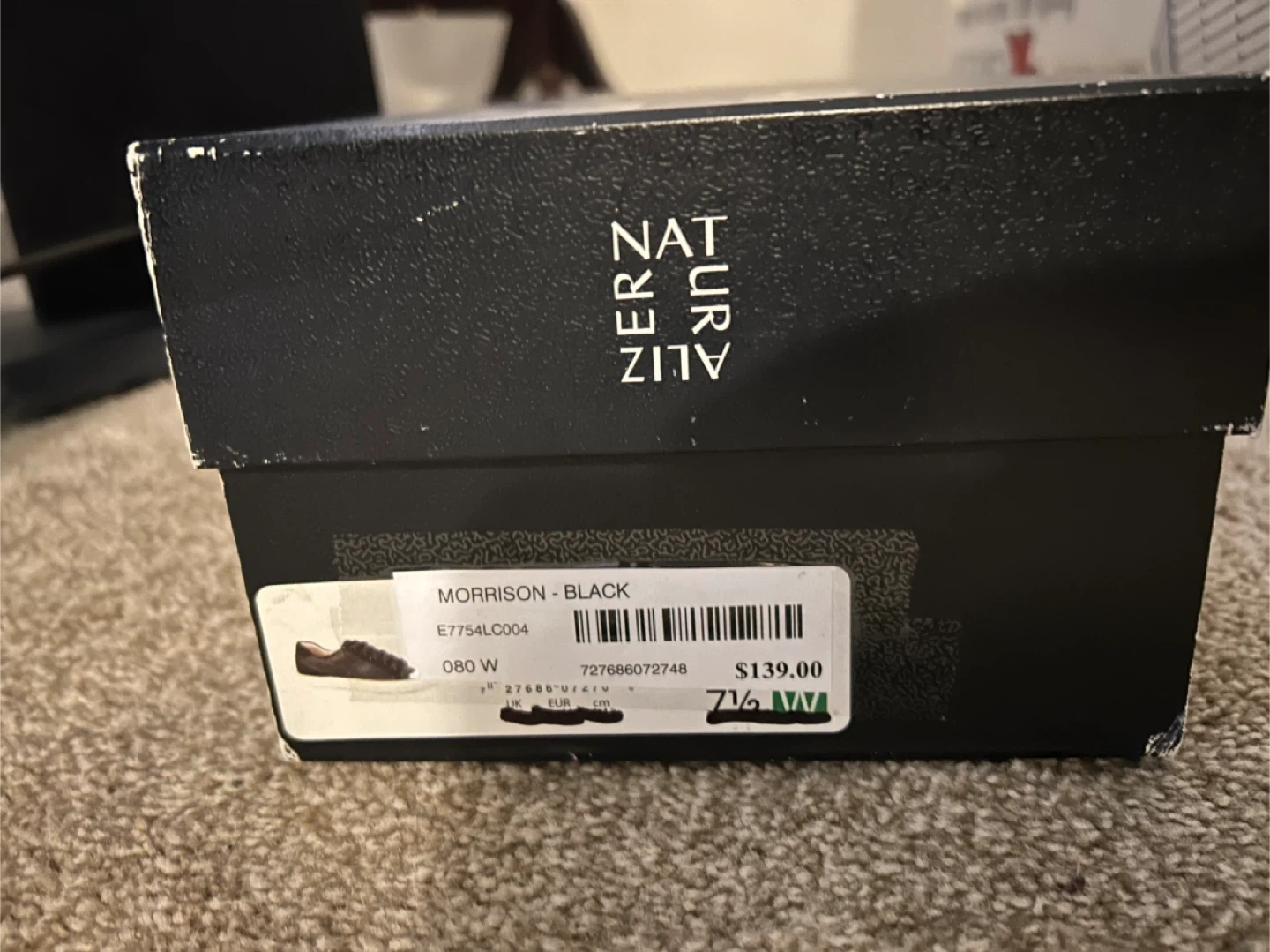 Naturalizer Morrison sneakers in black. Leather upper with a comfortable fit. Includes original box. Size 8W (US), 38 (EUR).