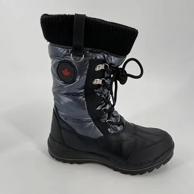 Keep your feet warm and stylish with these Cougar Kensington winter boots! They're waterproof and perfect for Canadian winters. The boots feature a lace-up design with a knit collar. They are black and grey. Used in great condition . Size 6
