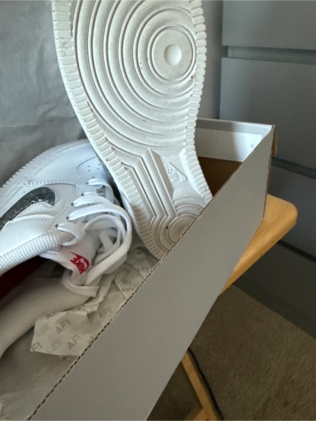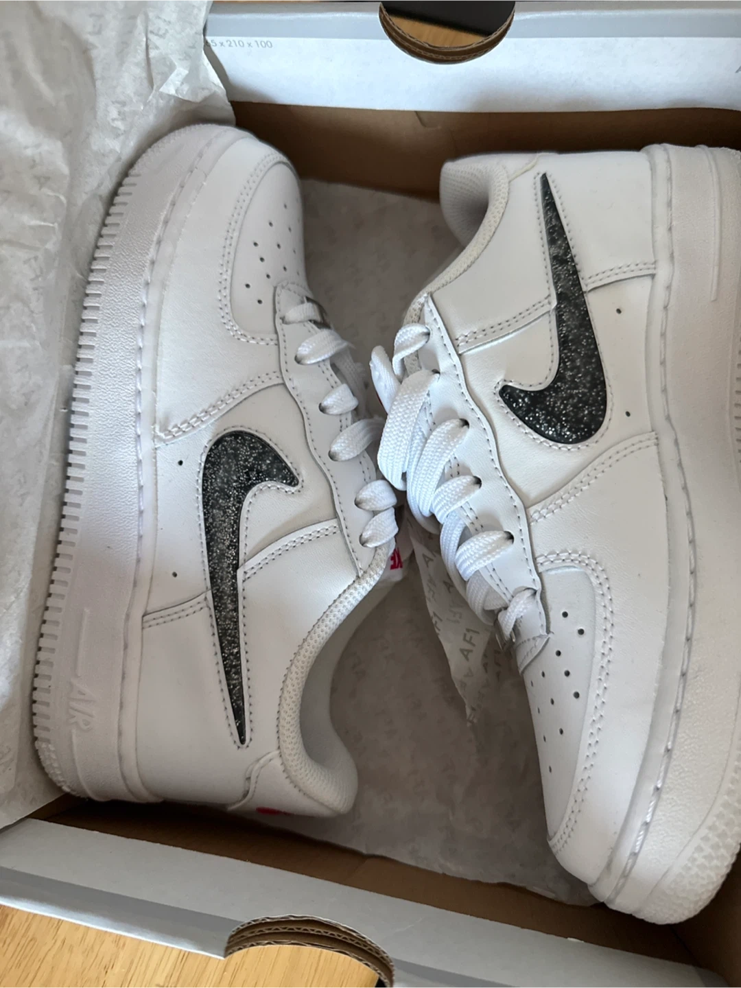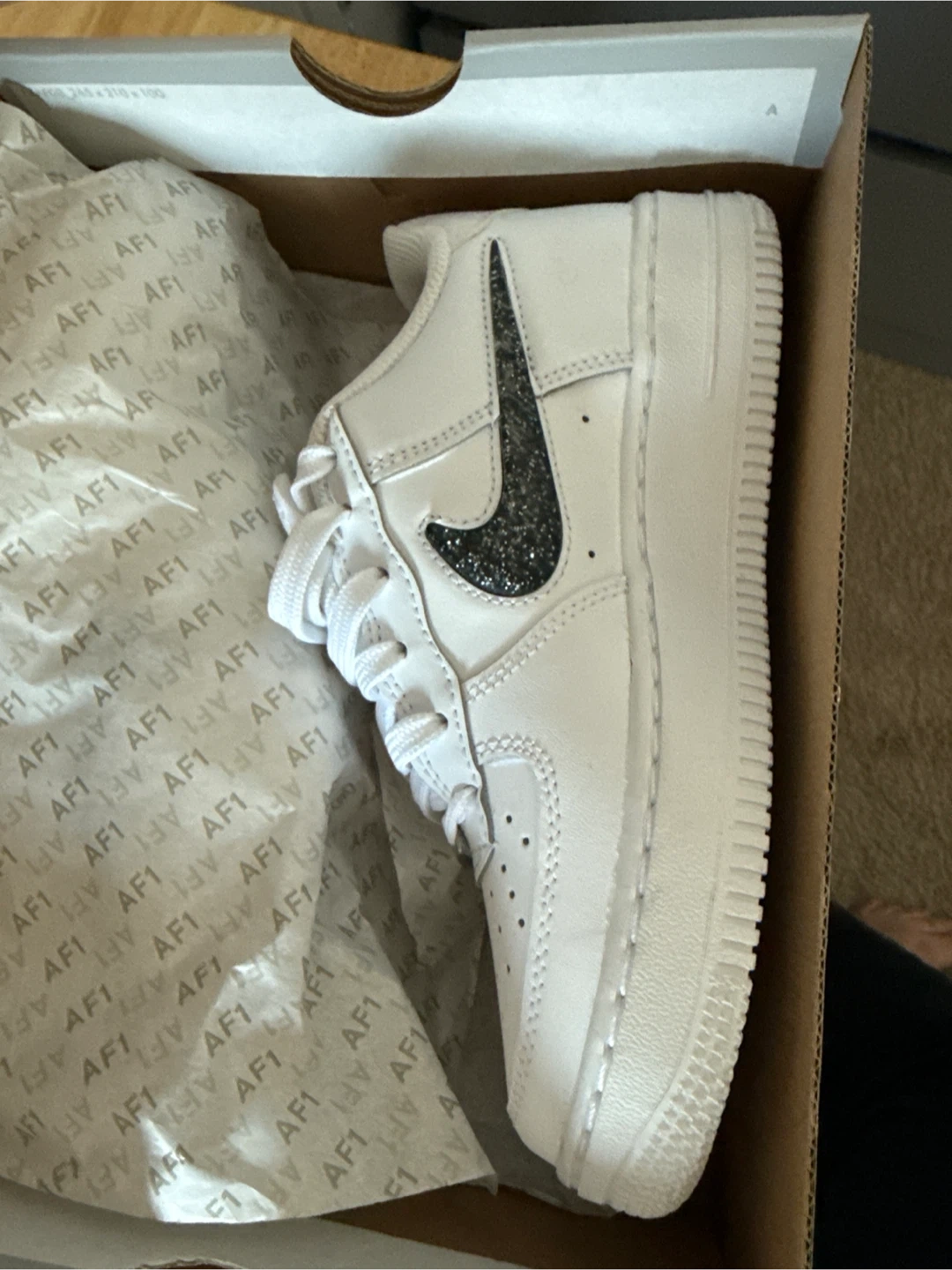 Buy & SellNike Air Force 1 LV8 (GS) White Glitter Swoosh Kids Size 3YNike Air Force 1 LV8 (GS) White Glitter Swoosh Kids Size 3Y$41White Nike Air Force 1 LV8 (GS) sneakers with a glittery black swoosh. Includes original box. Kids' size 3Y (US), 35.5 (EUR), 3 (UK).WHERE TO MEETCheck LocationView MapSELLERverifiedMaryIdagrove Gate14610 reviews0 chats·2 favorites·37 viewsSEND CHAT TO SELLERHi Mary! I’m interested in your listing.Hi Mary! I’m interested in your listing.Get the Karrot app to chatSign In to chat