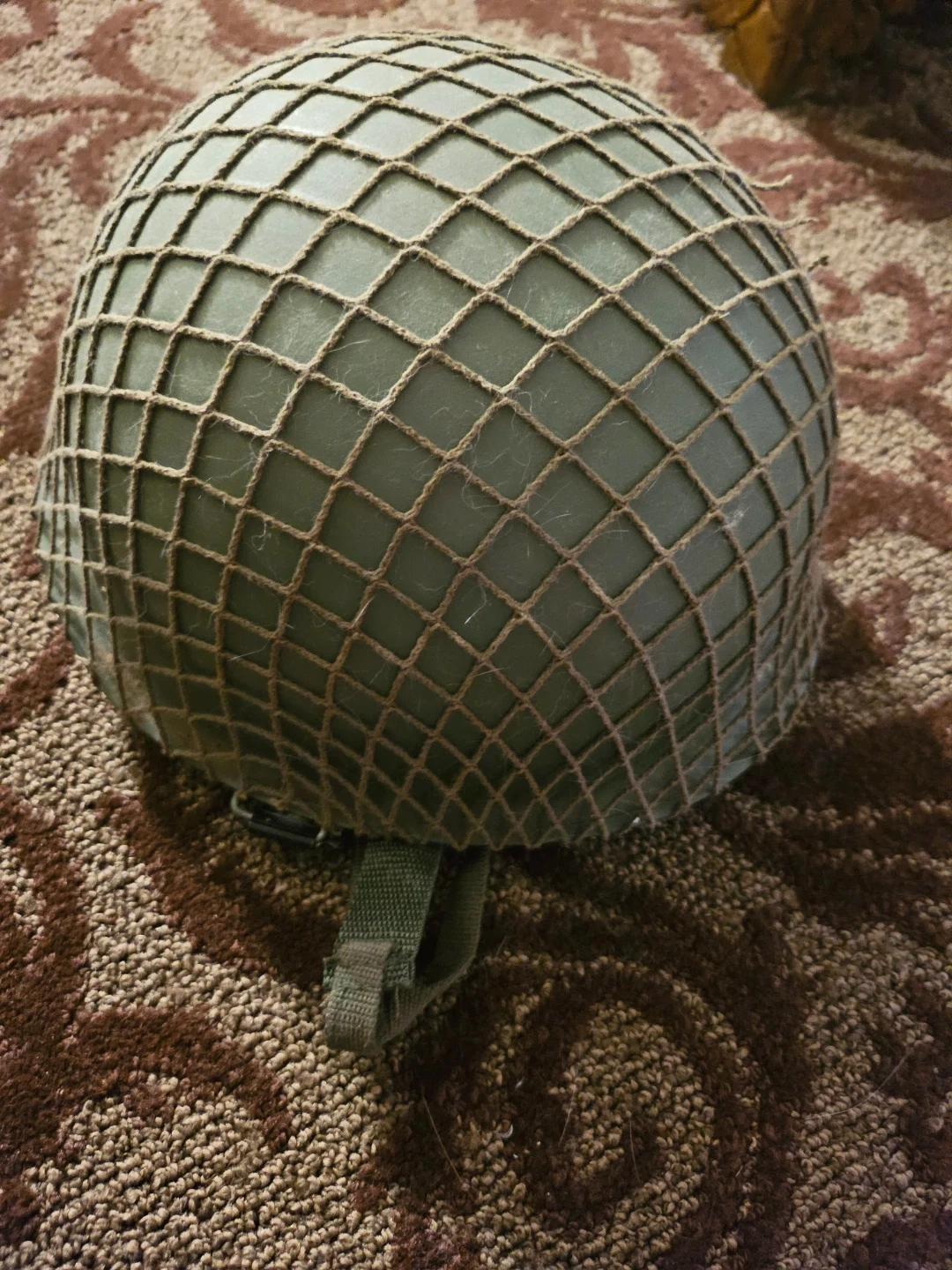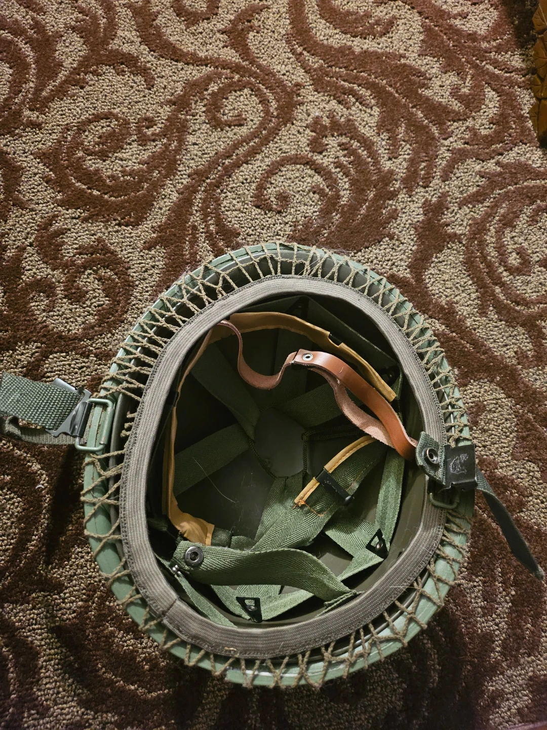 Selling a vintage military helmet in olive green. It appears to be in good condition for its age and would be great for collectors or historical reenactments. Please take a look at the photos for a better idea of its condition!
