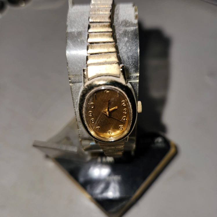 Selling a Timex Quartz watch in gold! The original price was $39.99. It's in good condition and ready for a new wrist