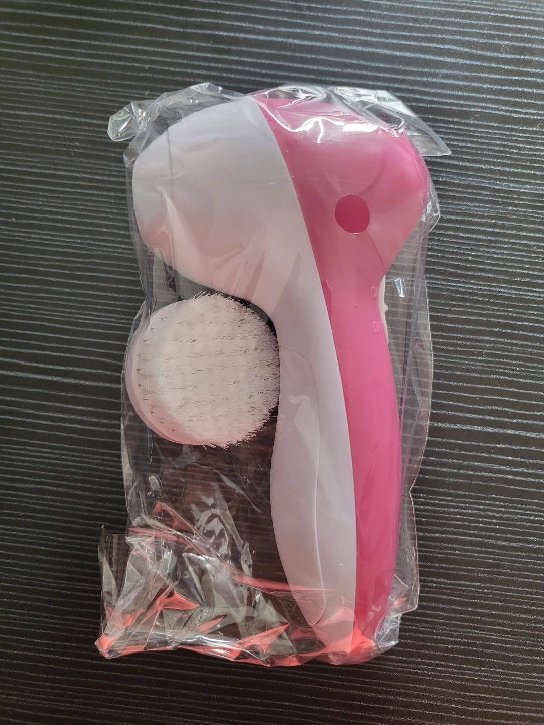 This b.pure power facial cleansing brush removes dirt, oil, and makeup. It gently exfoliates and unclogs pores. Requires 2 AA batteries (not included).