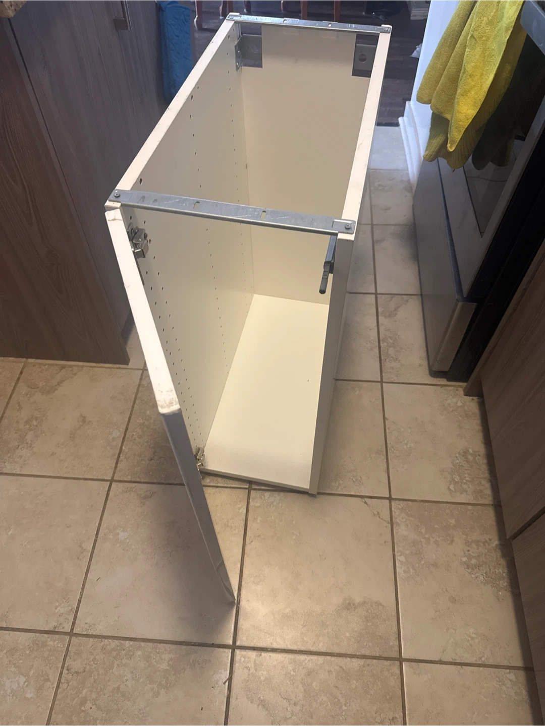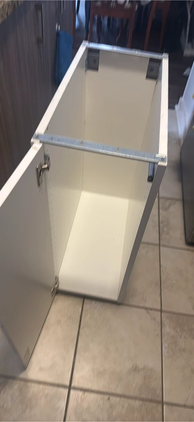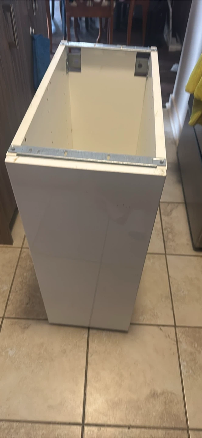 Selling an IKEA kitchen cabinet frame in white. It's in great condition and ready for a new kitchen project! Perfect for adding extra storage to your home. 24.5x12x30