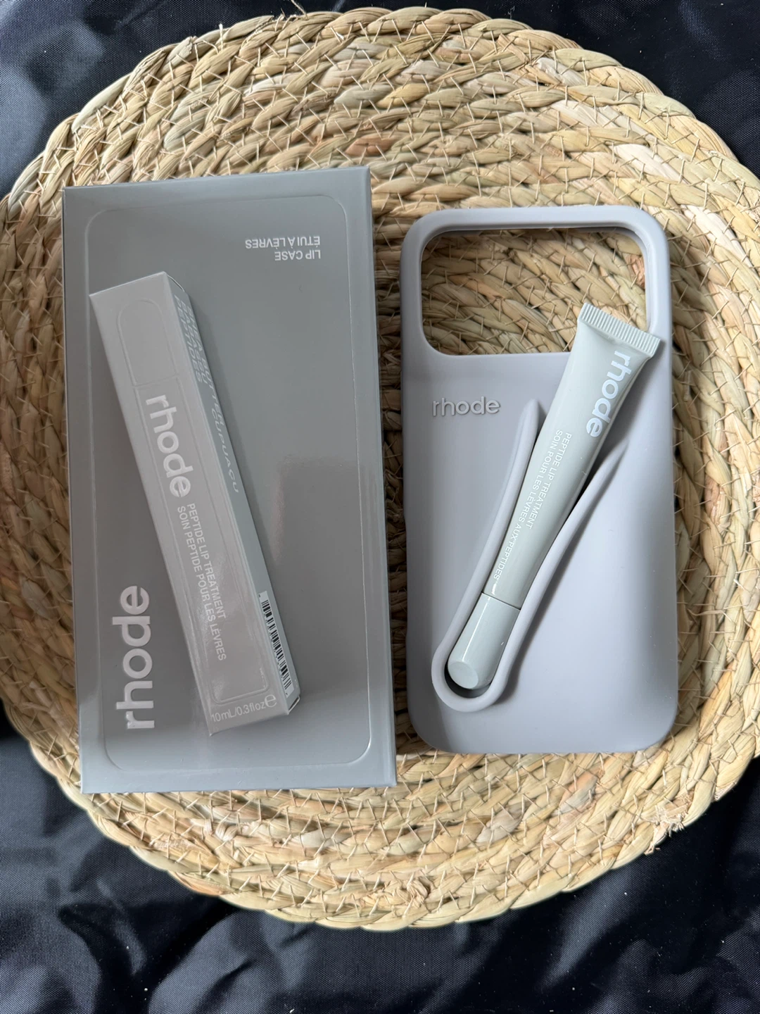 This is the Rhode Peptide Lip Treatment in the shade "Peptide Lip Treatment". It comes with a grey lip case. The lip treatment is 10ml or 0.3 fl oz.