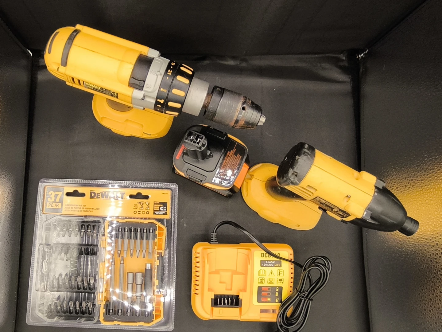 DeWalt Drill, Impact Driver, Battery, Charger & Bit Set
