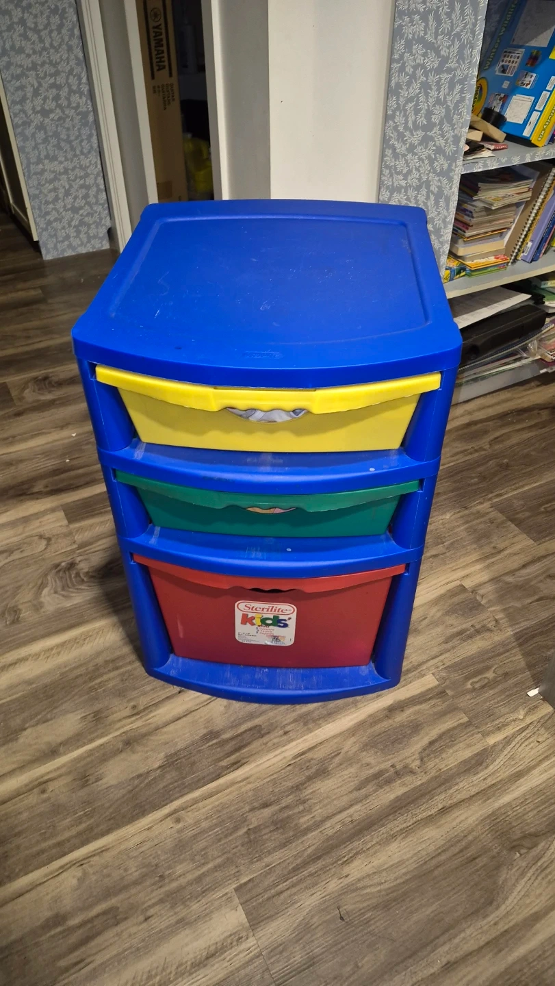 Gently used Sterilite Kids 3-Drawer Storage Unit in great working condition.