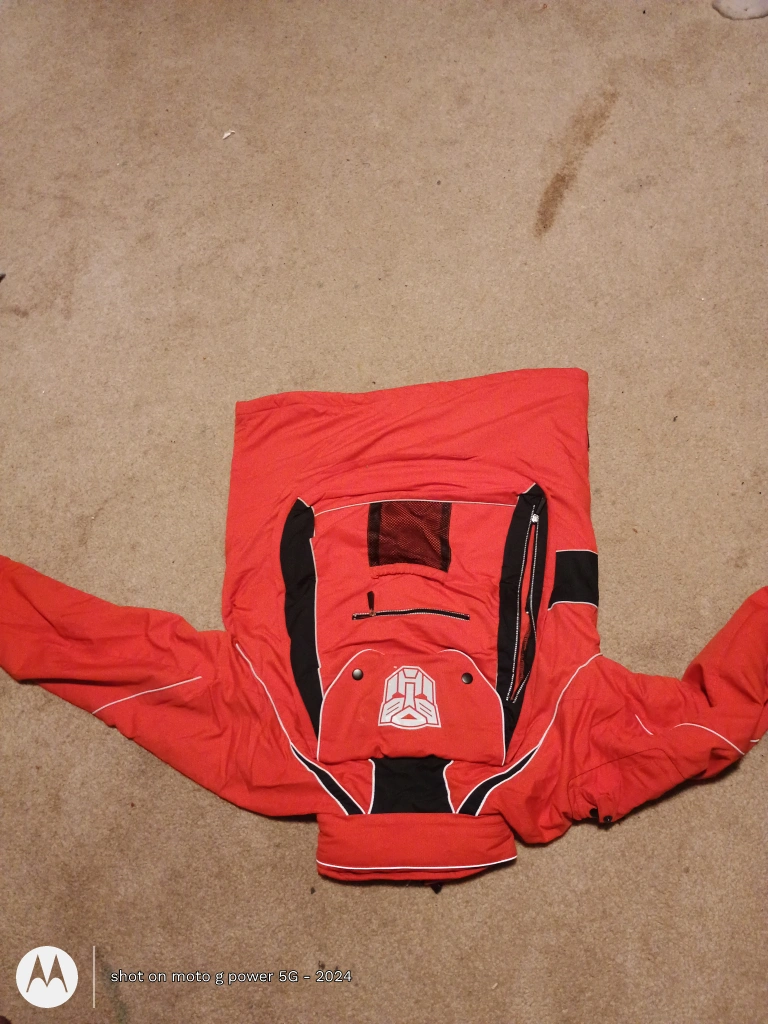 Selling a bright orange XIP3 ski jacket! Perfect for hitting the slopes or staying warm this winter. It has a unique design on the back and plenty of pockets for all your essentials