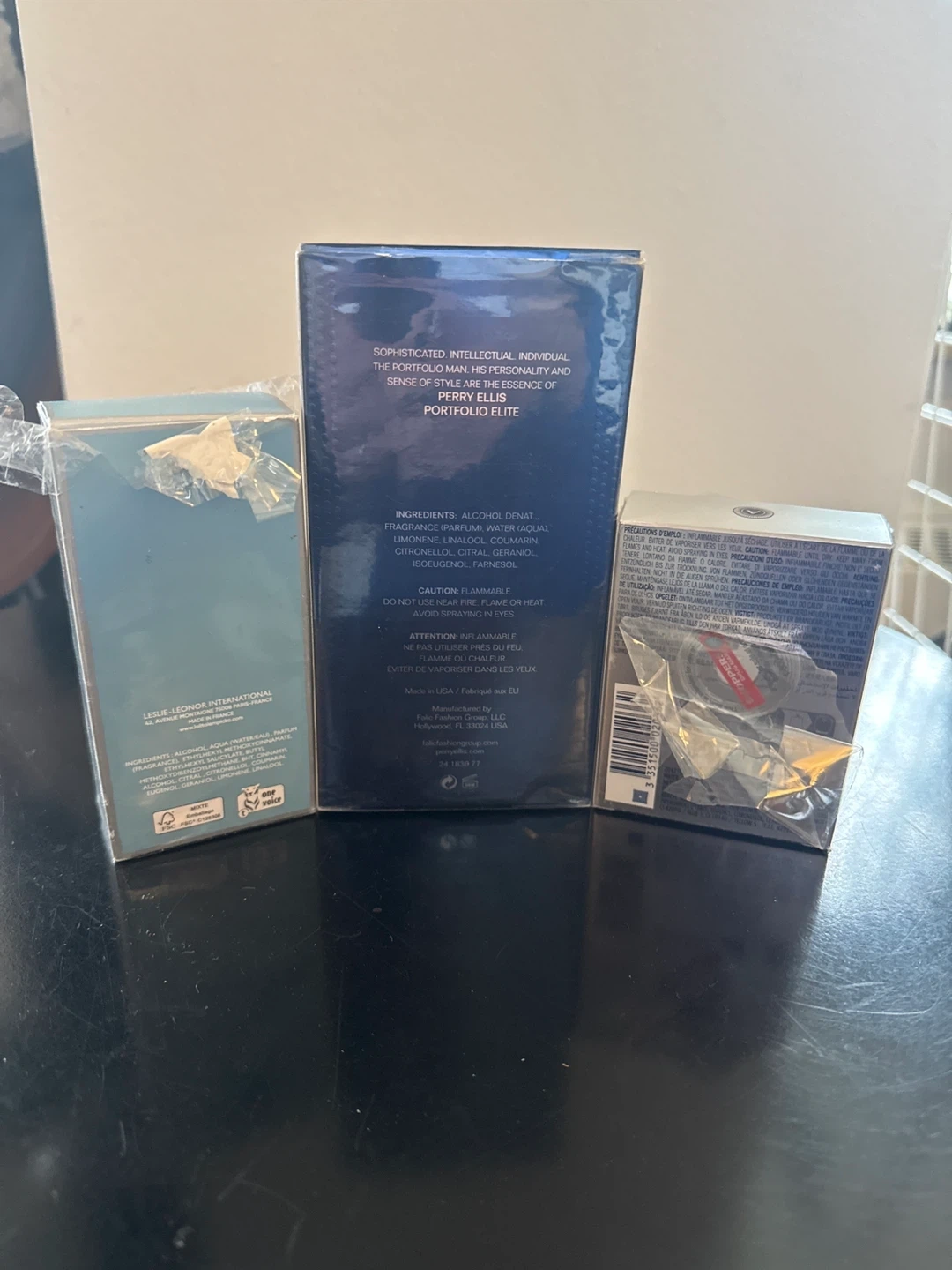 Bundle of three men's fragrances. Includes Perry Ellis Portfolio Elite, Lolita Lempicka, and a Zara fragrance. Ideal for someone looking to try a variety of scents.