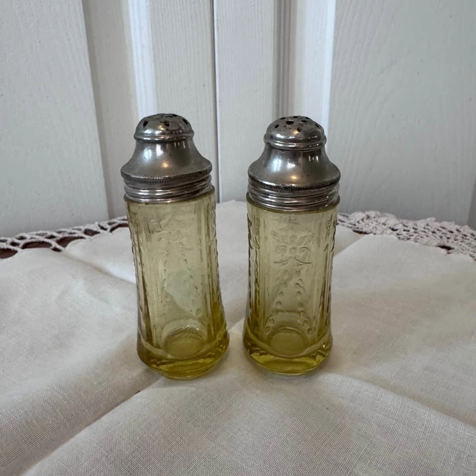Vintage Amber Madrid Depression Glass Salt & Pepper Shakers Fede
