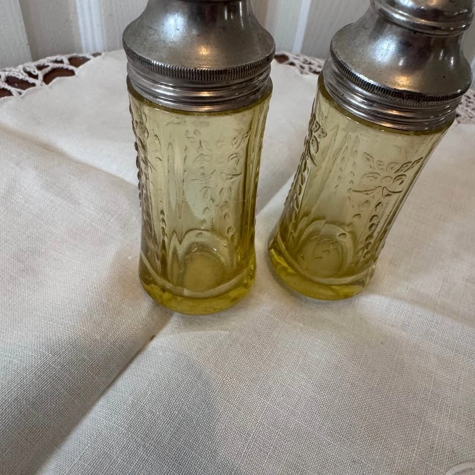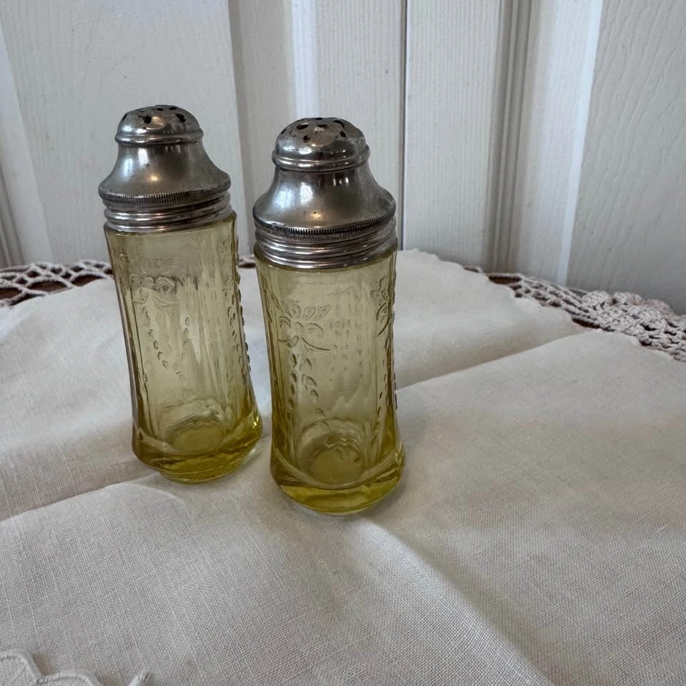 Depression era Madrid pattern amber Federal Glass salt and pepper shakers. In very good condition with some wear on the metal tops. Pick up north side Edmonton.