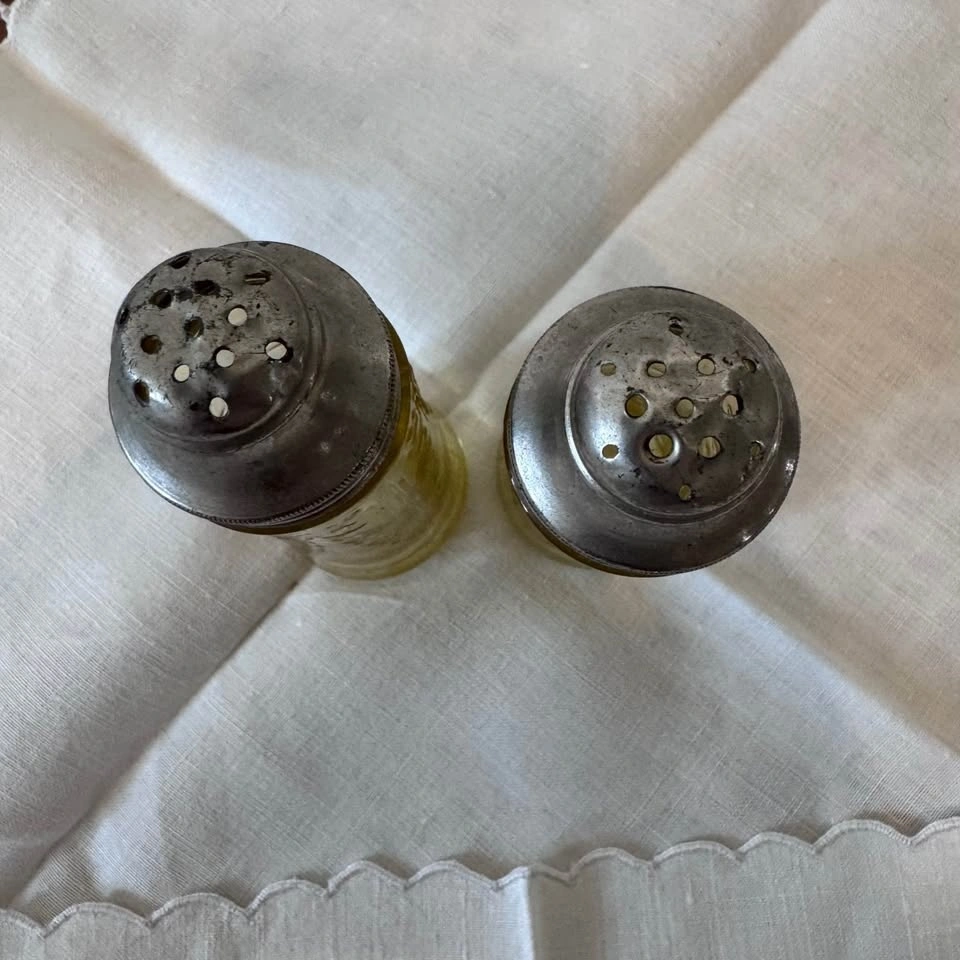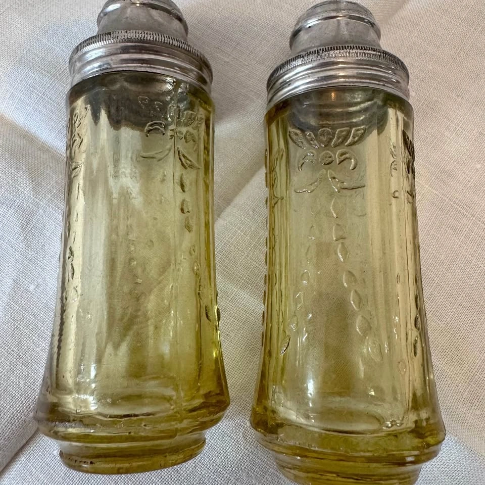 Depression era Madrid pattern amber Federal Glass salt and pepper shakers. In very good condition with some wear on the metal tops. Pick up north side Edmonton.