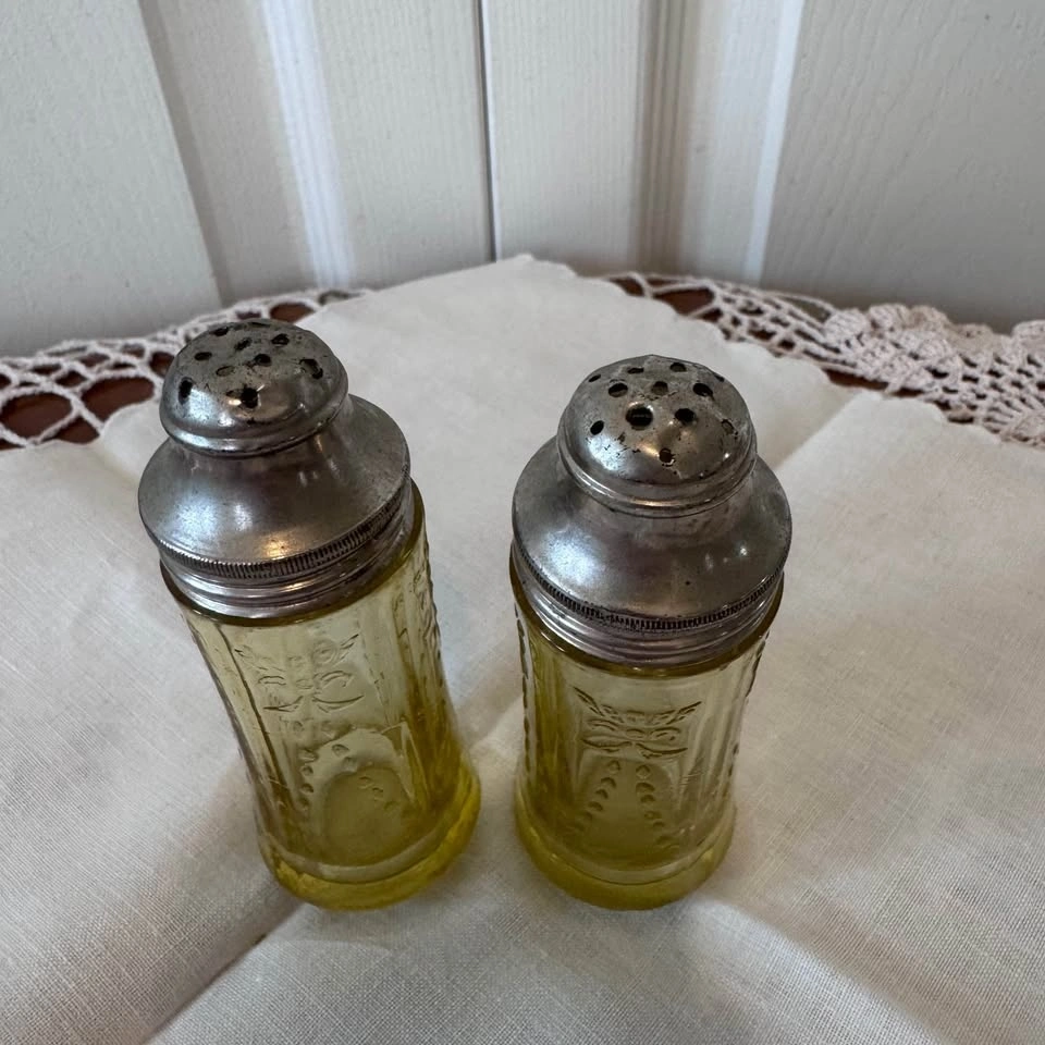Vintage Amber Madrid Depression Glass Salt & Pepper Shakers Fede