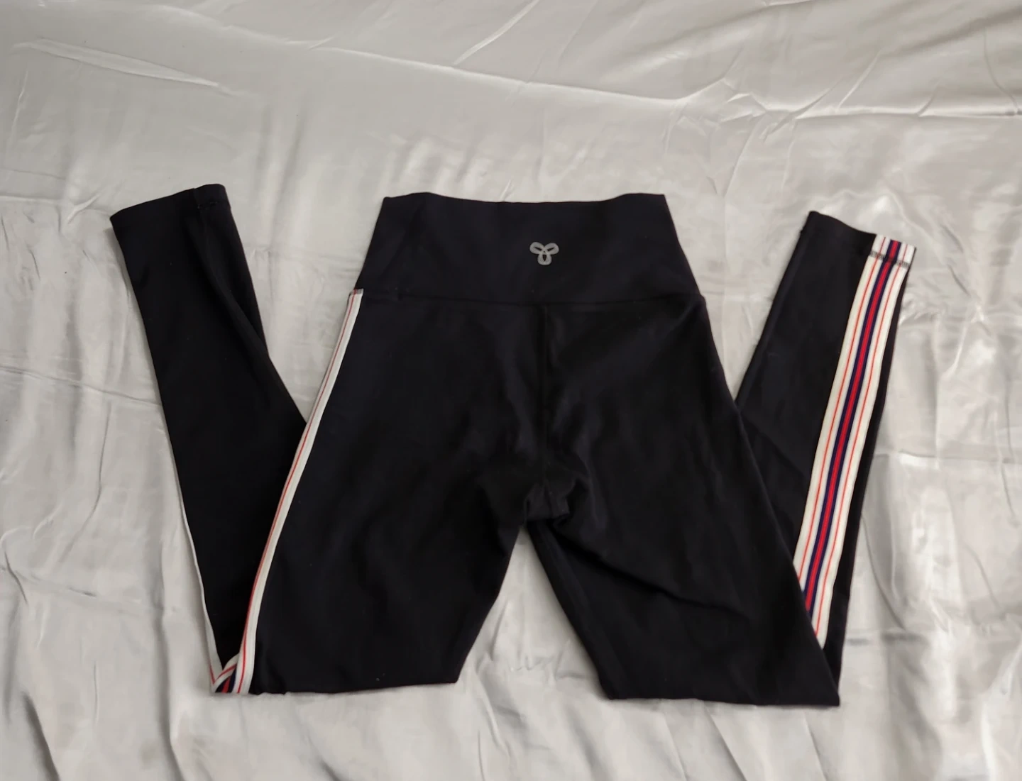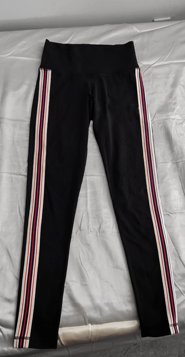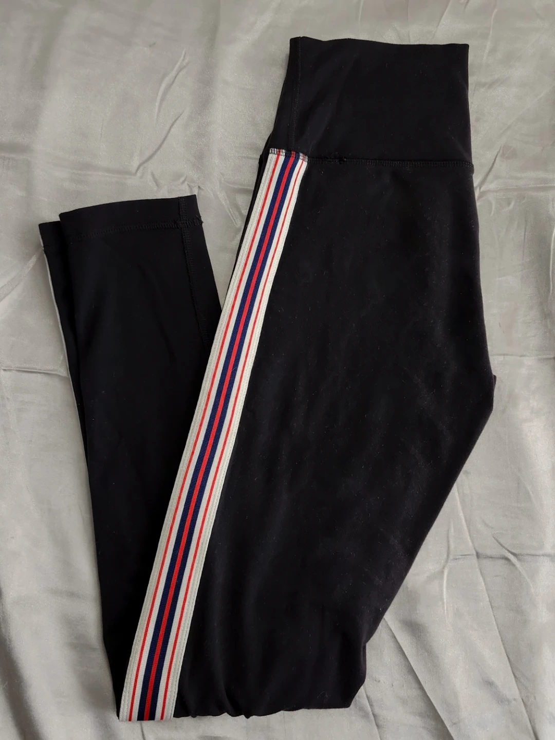 TNA Atmosphere leggings in red, white, and navy stripe. Size Small. High-waisted fit.