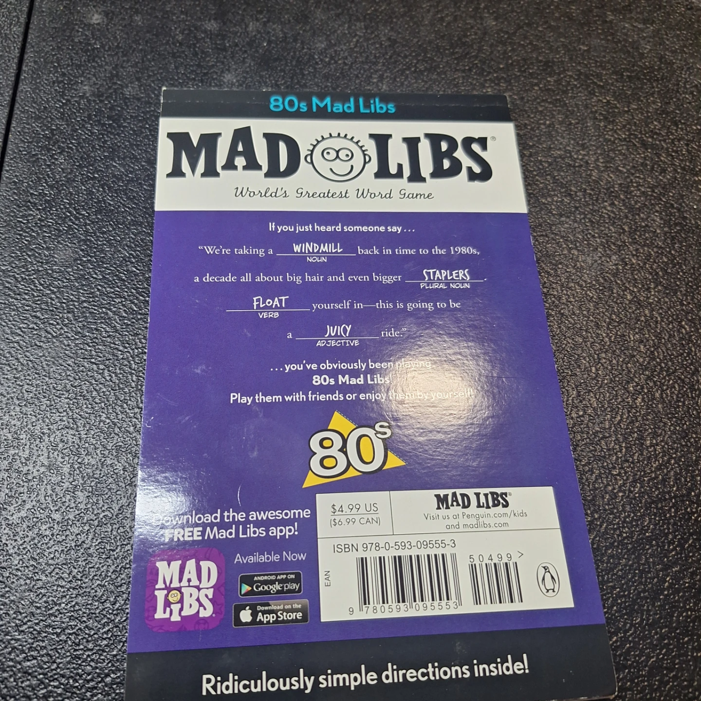 Mad Libs '80s Edition' is a fun word game for friends. Includes a booklet with game prompts. Perfect for reliving the 80s!