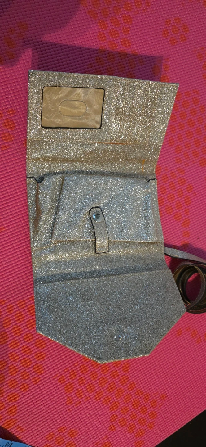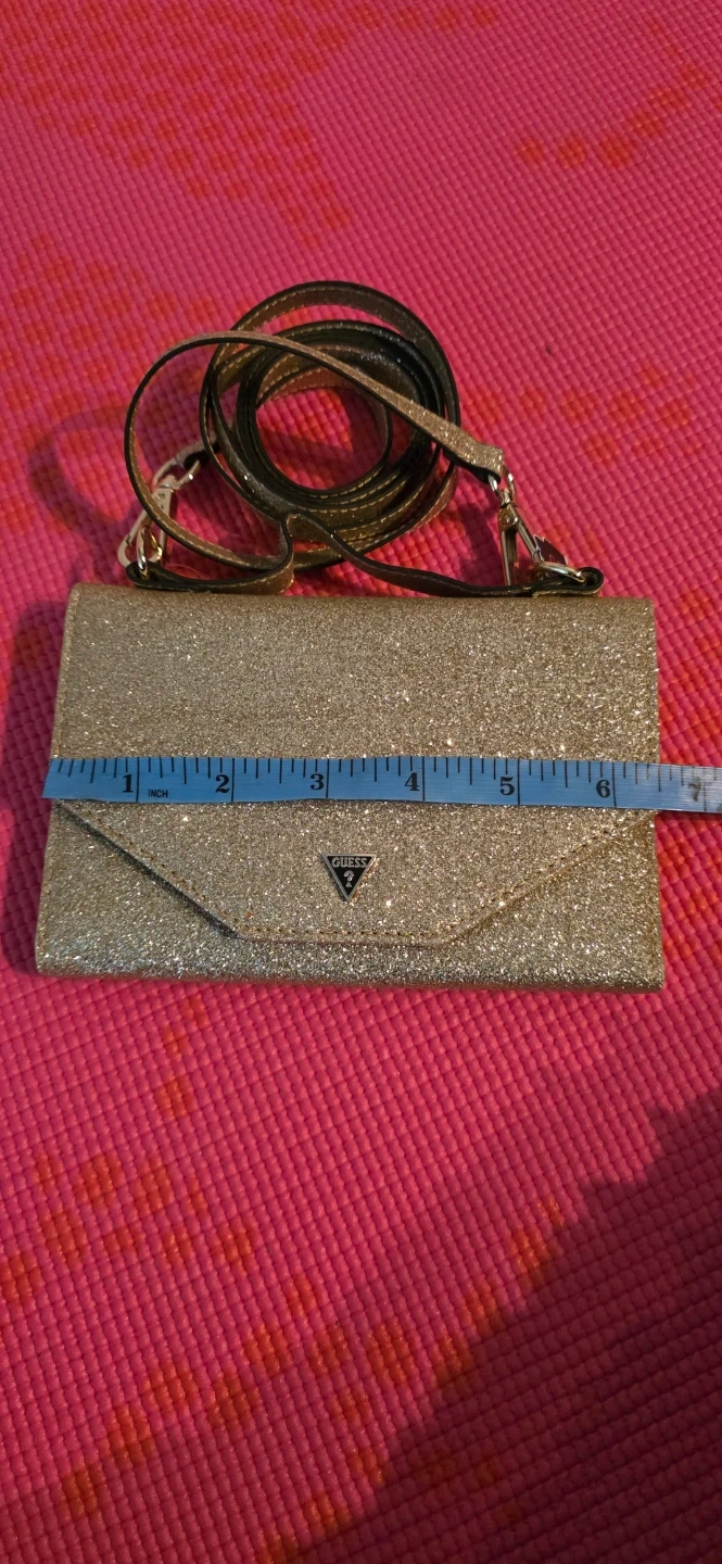 Brand new with tag, sparkly gold glitter clutch or wallet from Guess. It comes with a detachable strap. Slot for phone and cards. Measurements are in pictures.