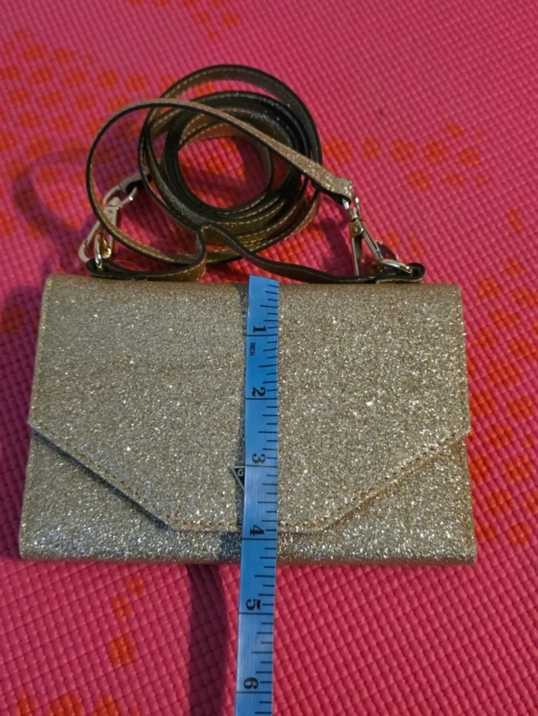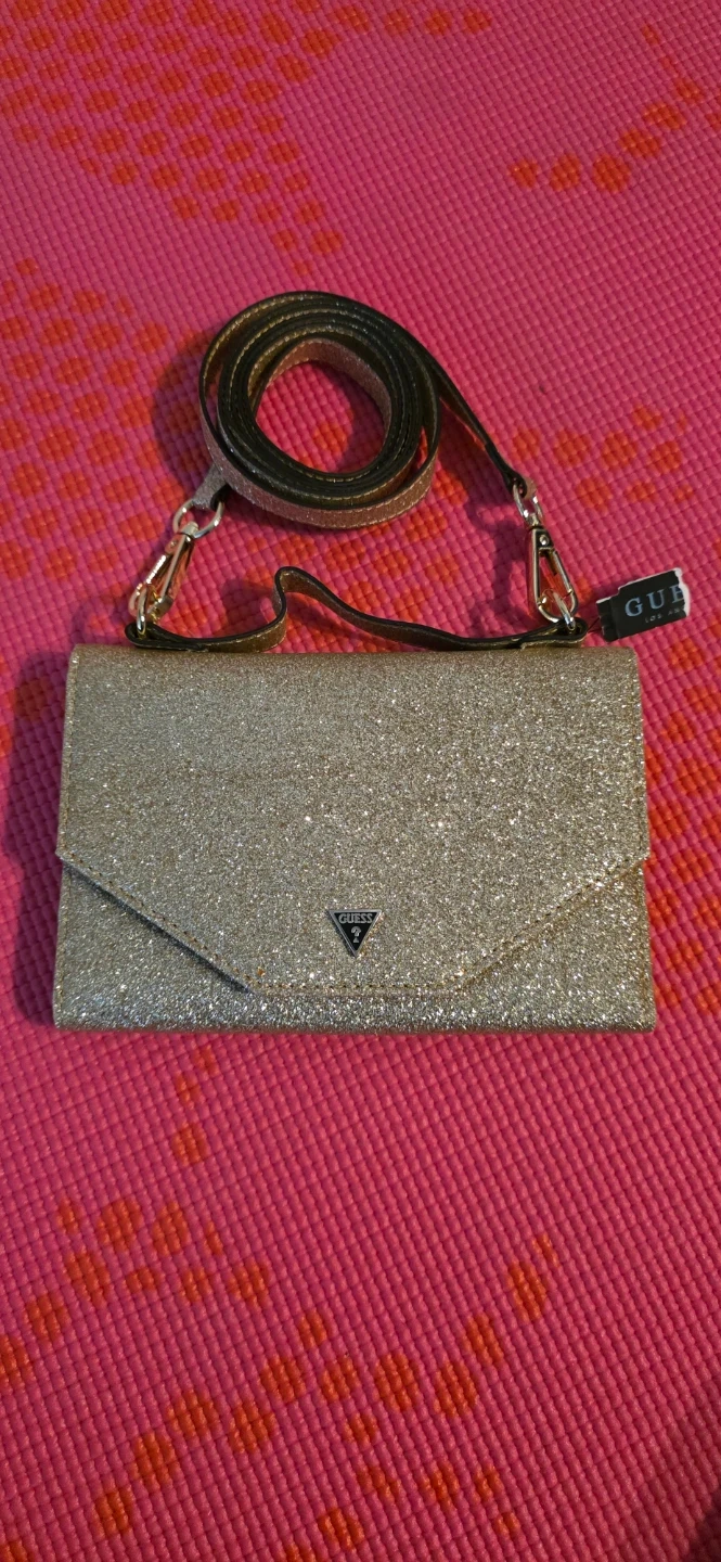 Brand new with tag, sparkly gold glitter clutch or wallet from Guess. It comes with a detachable strap. Slot for phone and cards. Measurements are in pictures.