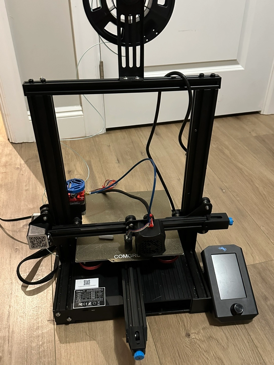 Upgraded with Capricorn tube, PEI build plate, upgraded springs/dampeners, aluminum extruder assembly, and CR Touch, comes with a small roll of PETG filament as shown.