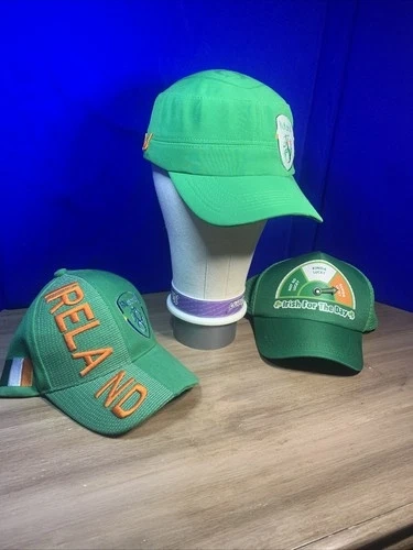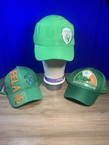 This listing includes three Irish themed hats sold together as a bundle. Perfect for St. Patrick’s Day celebrations, Irish festivals and events, soccer fans supporting Ireland, golf outings or casual wear, and collectors of Ireland memorabilia. Included in this lot: 1️⃣ Ireland FAI soccer themed baseball cap, 2️⃣ Ireland “Irish For The Day” novelty hat, 3️⃣ Ireland embroidered baseball cap. All hats feature Ireland themed designs and green colorways that represent Irish pride. These hats are pre-owned and in good condition with normal wear from use. Please review all photos carefully as they are part of the description and show the exact items you will receive. Most hats are adjustable or flex fit and designed to fit most adult head sizes. All three hats are included in this sale. Great value for anyone looking for multiple Irish themed hats in one purchase. Perfect for St. Patrick’s Day parties, Irish festivals, or showing Irish pride year round. Thank you for looking and feel free to message with any questions.
