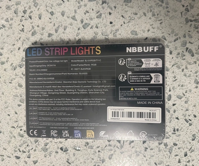 Brand New NBBUFF LED Light strips. Multi Colour, perfect for bedrooms, gaming setups, desks, TVs, or dorm rooms. Length: 5 meters / 16.4 feet. Multiple color options and brightness control. Includes remote control. Easy peel and stick installation. Pick-up in Vaughan or Brampton.