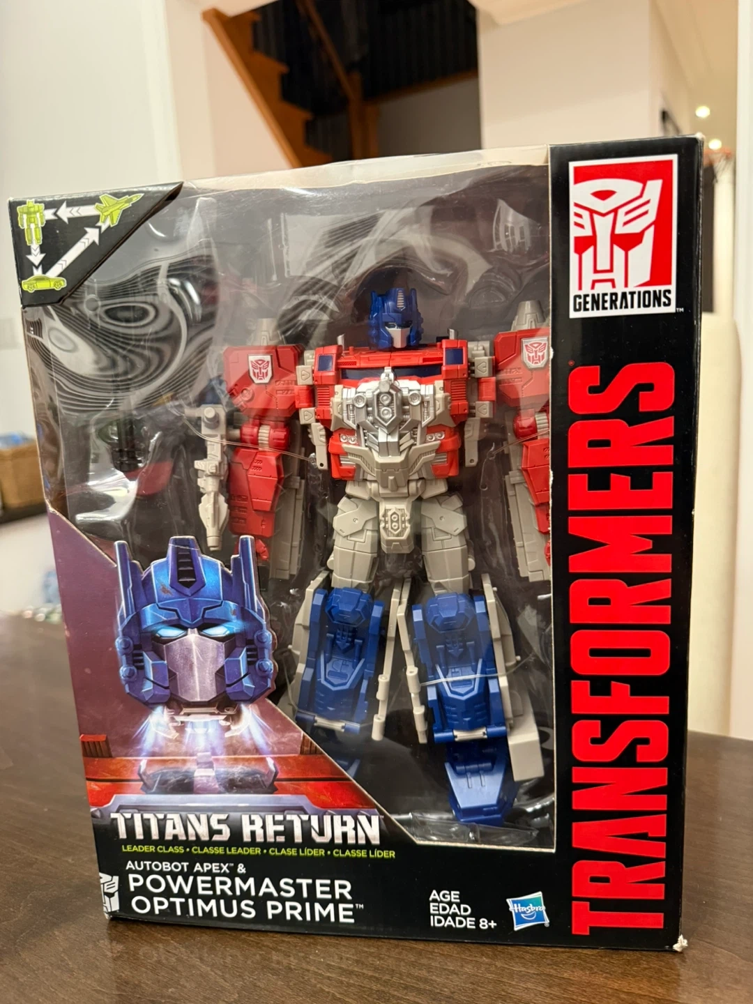 Limited Edition This is the Transformers Titans Return Autobot Apex & Powermaster Optimus Prime figure. It's from the Generations line and is suitable for ages 8 and up. This set includes the Powermaster Optimus Prime figure and Autobot Apex.