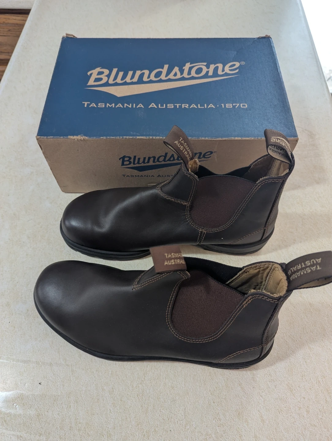 Selling a pair of brand new Blundstone 500 boots in size 10 AUS/UK. They're a dark brown colour and come with the original box. These boots are super durable and comfortable and will last for years if taken care of.
