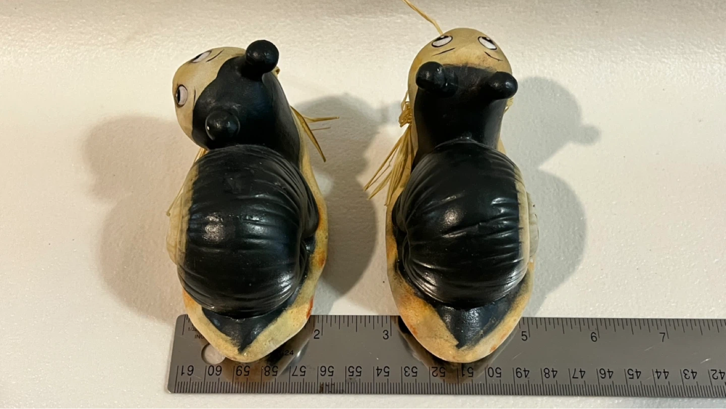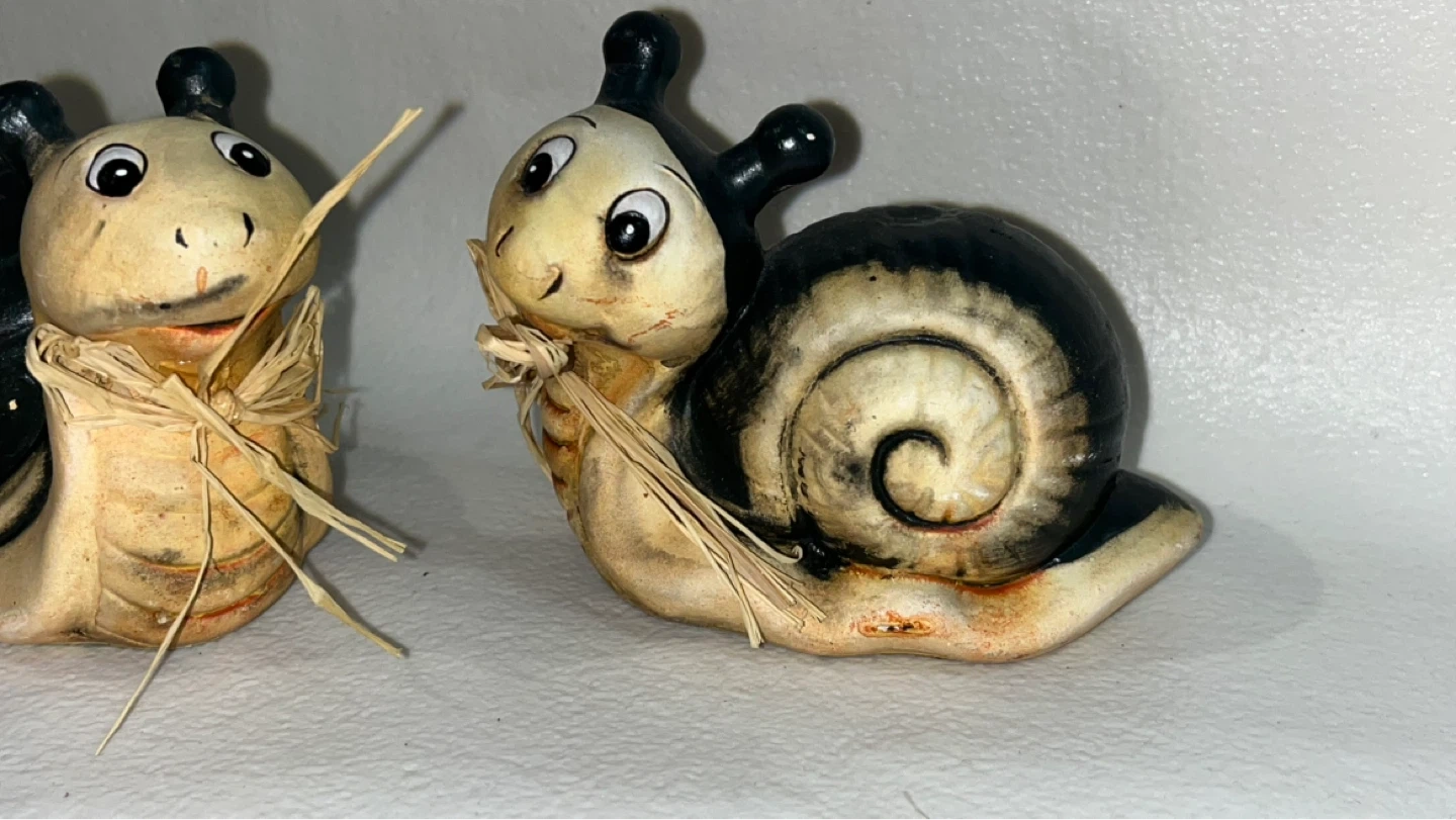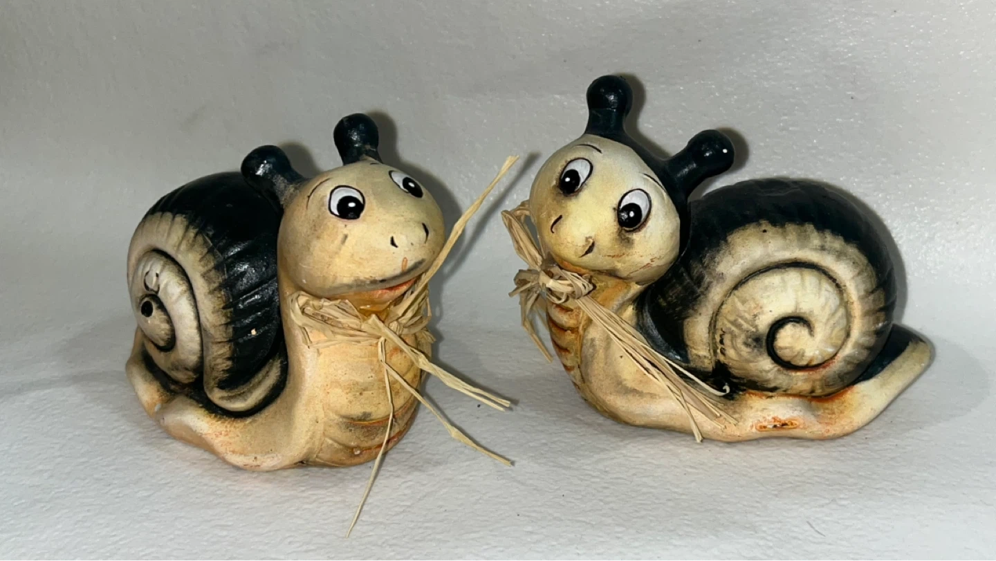 Pair of Ceramic Snail Figurines with Straw Bows