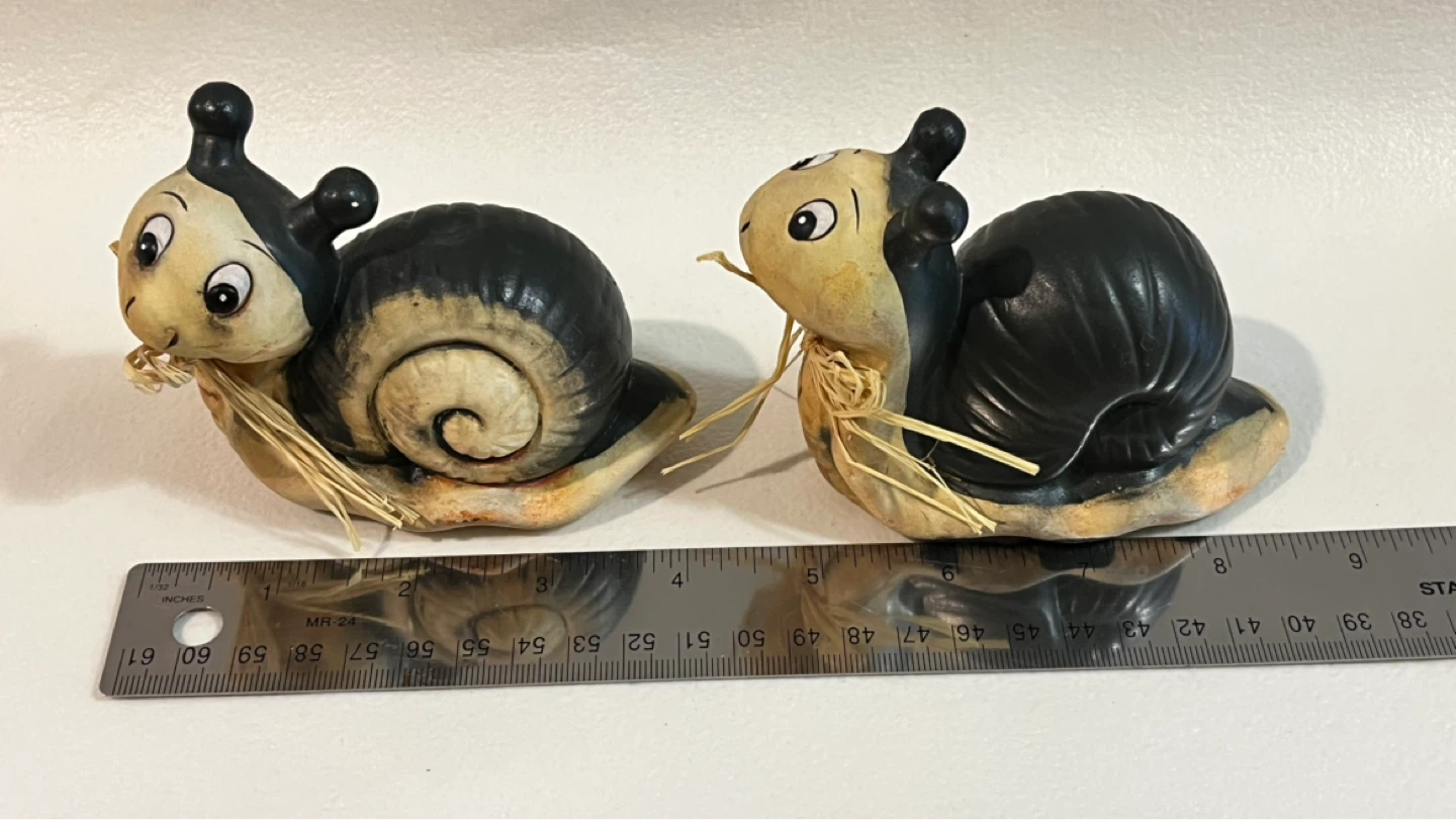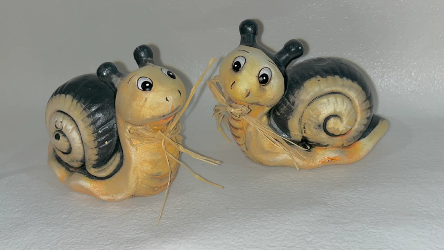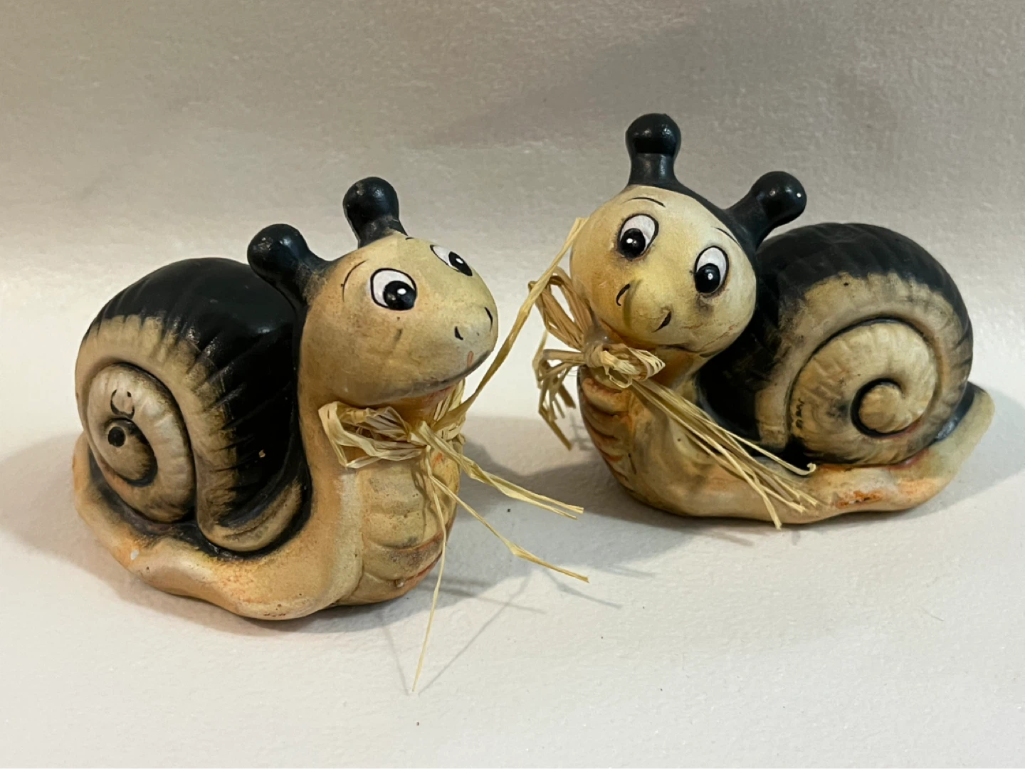 Pair of Ceramic Snail Figurines with Straw Bows