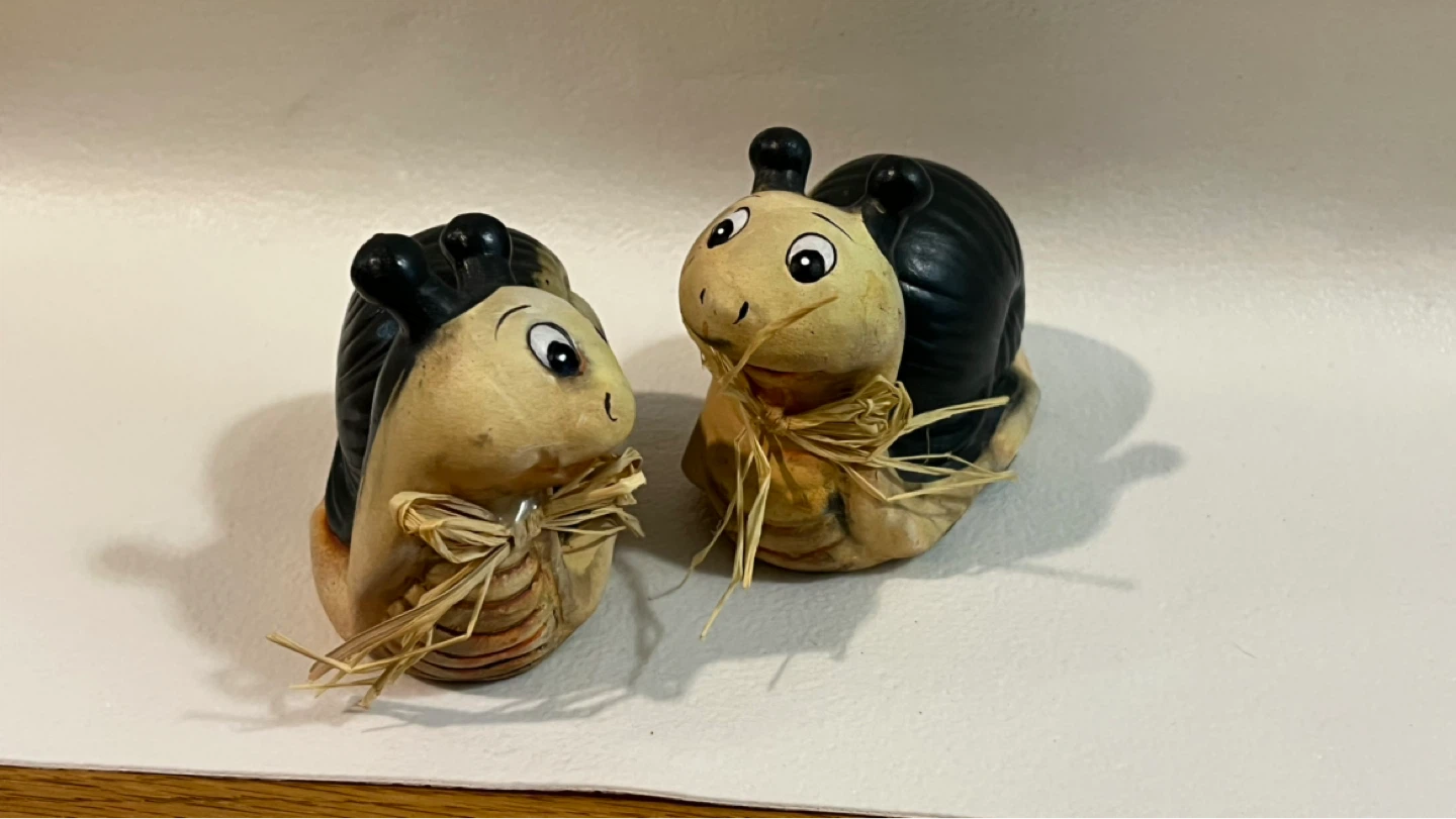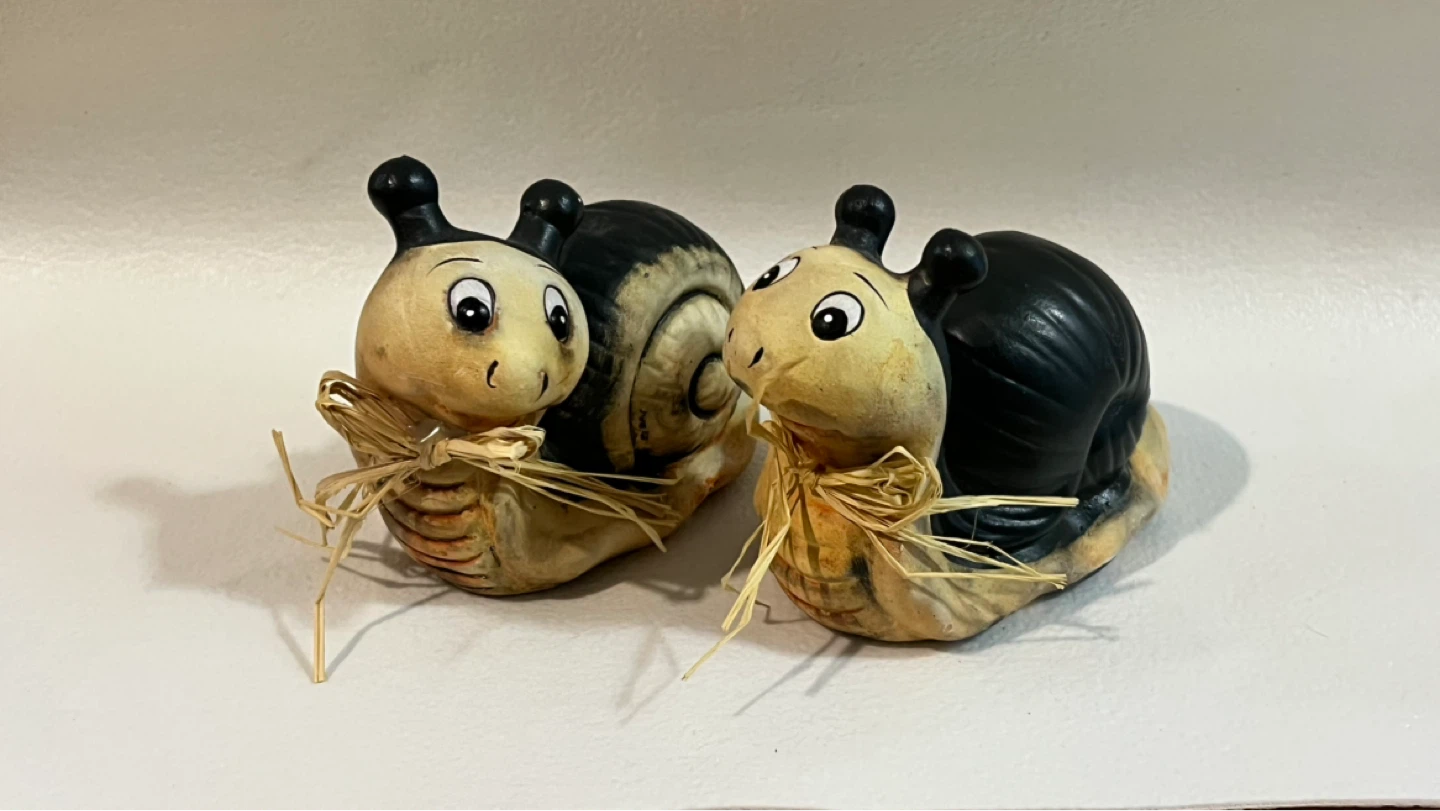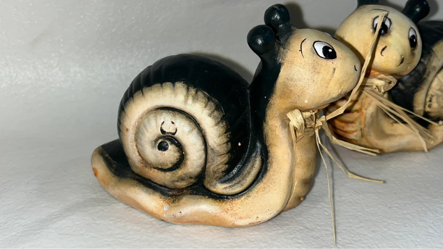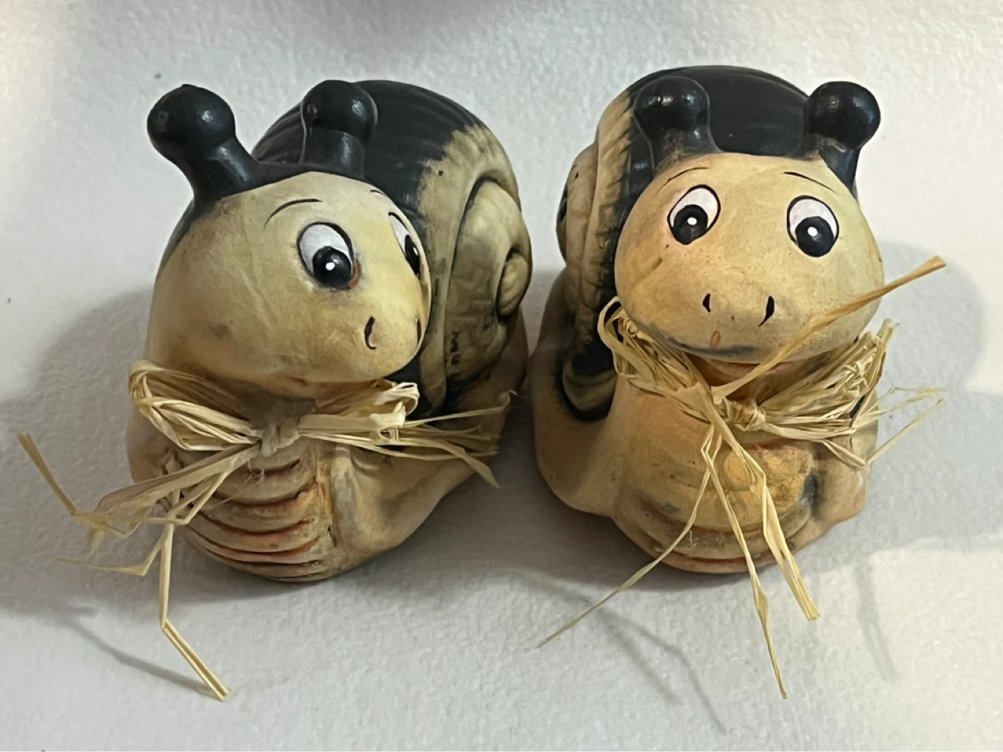 Pair of Ceramic Snail Figurines with Straw Bows