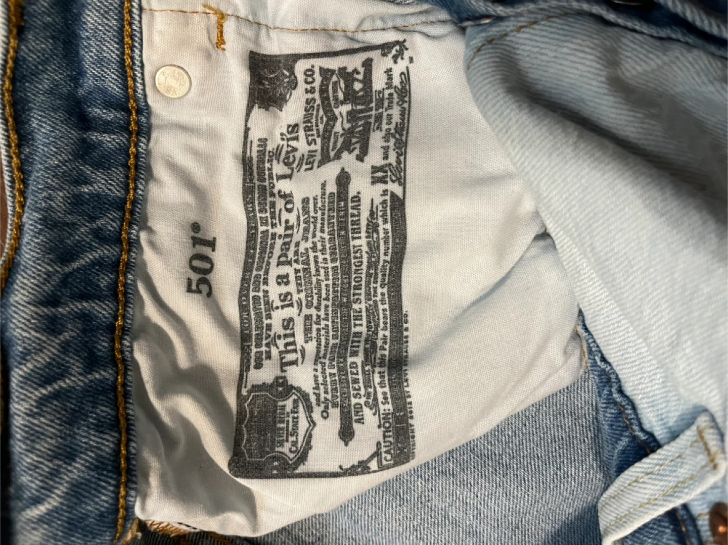 Levi's 501 jeans in a unique two-tone wash. Waist is 31 inches, inseam is 28 inches. Denim material.