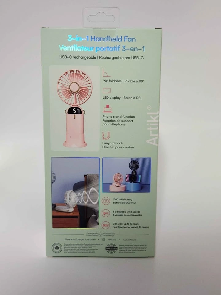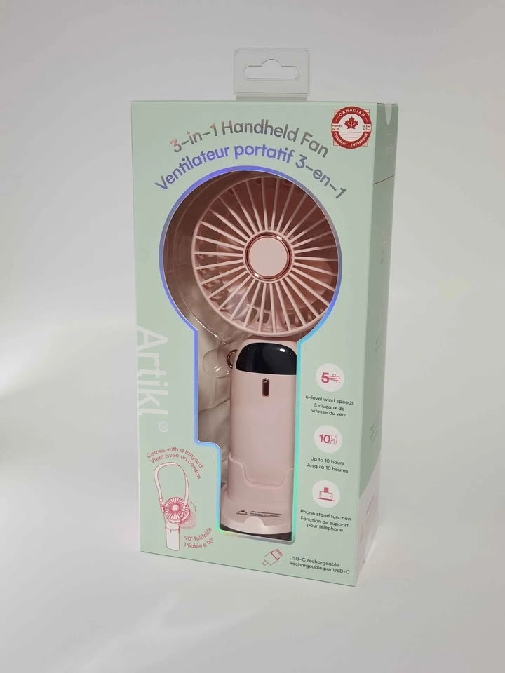 Stay cool anywhere with this versatile Artikl 3-in-1 Handheld Fan. It’s more than just a fan—it’s a portable cooling station perfect for travel, outdoor events, or your office desk.