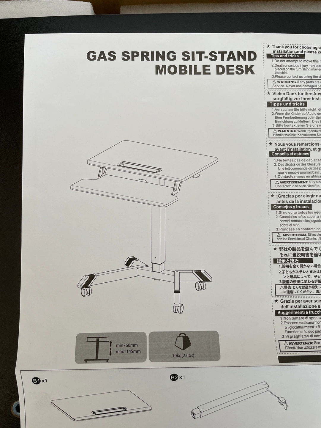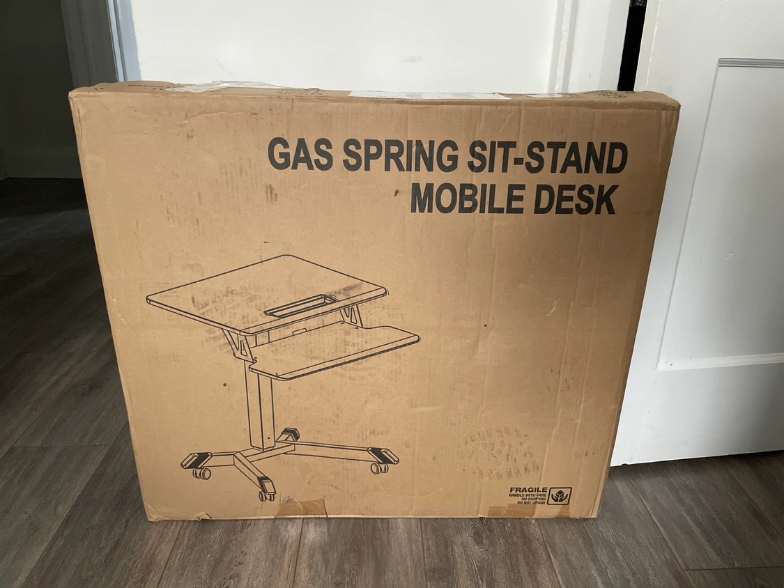 It is a gas spring sit-stand mobile desk that you can move around in your space.
