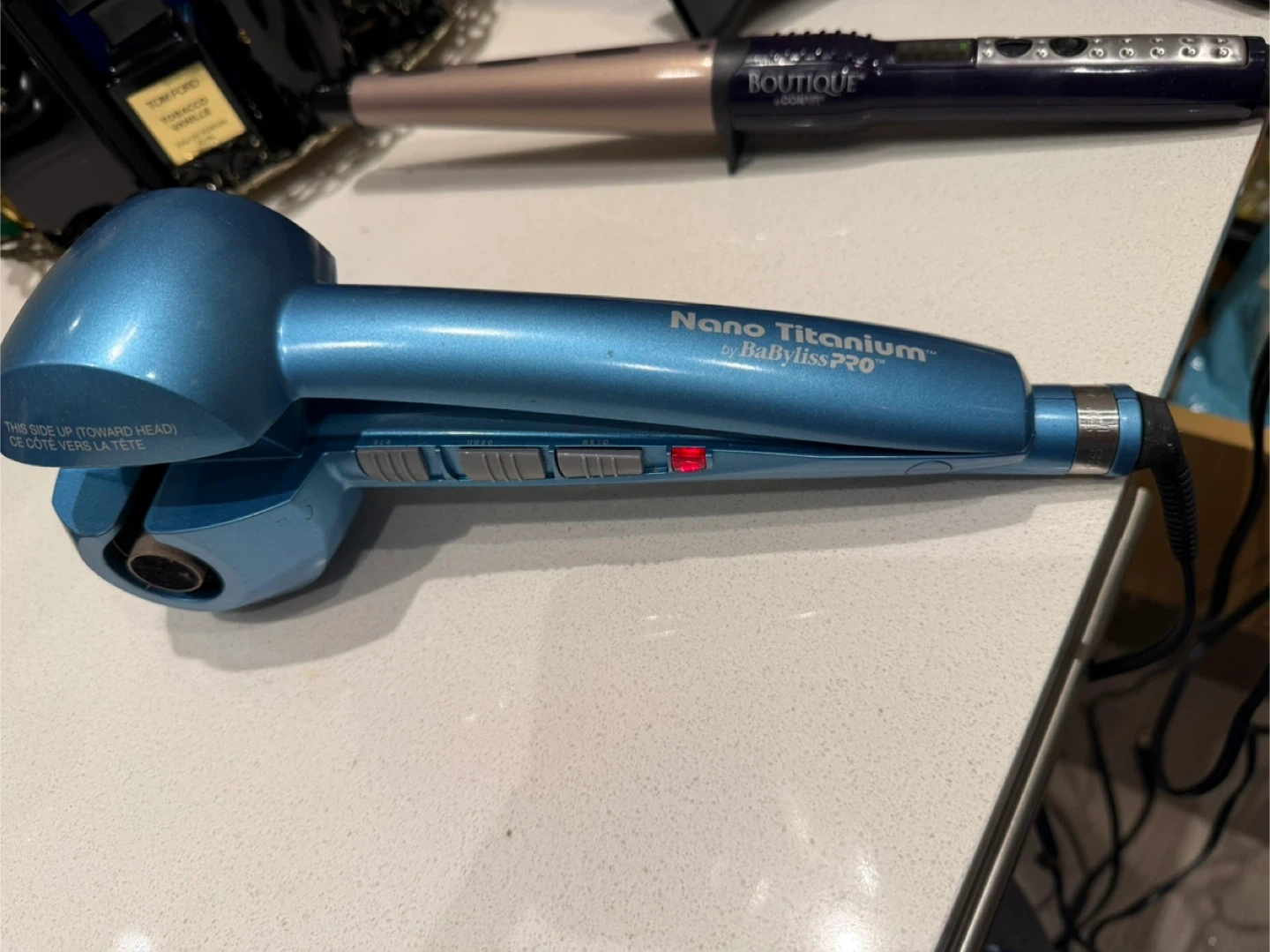 Selling a BabylissPRO Nano Titanium curling iron! It's in great shape and ready to help you create beautiful curls. The Nano Titanium technology ensures even heat distribution for less damage and shiny results. Perfect for all hair types!