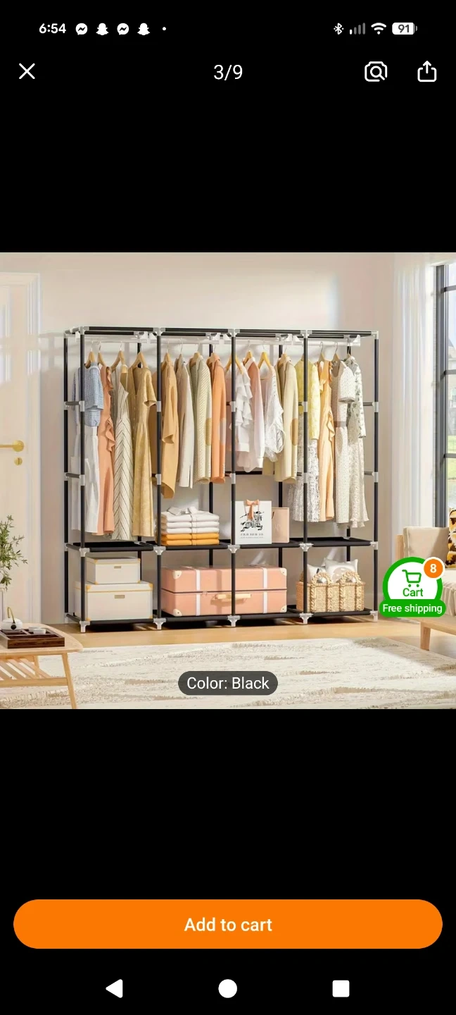 This portable wardrobe closet is a great way to organize your clothes and accessories. It features multiple shelves for folded items and hanging rods for garments. The black fabric cover keeps your items dust-free. Assembly is required.