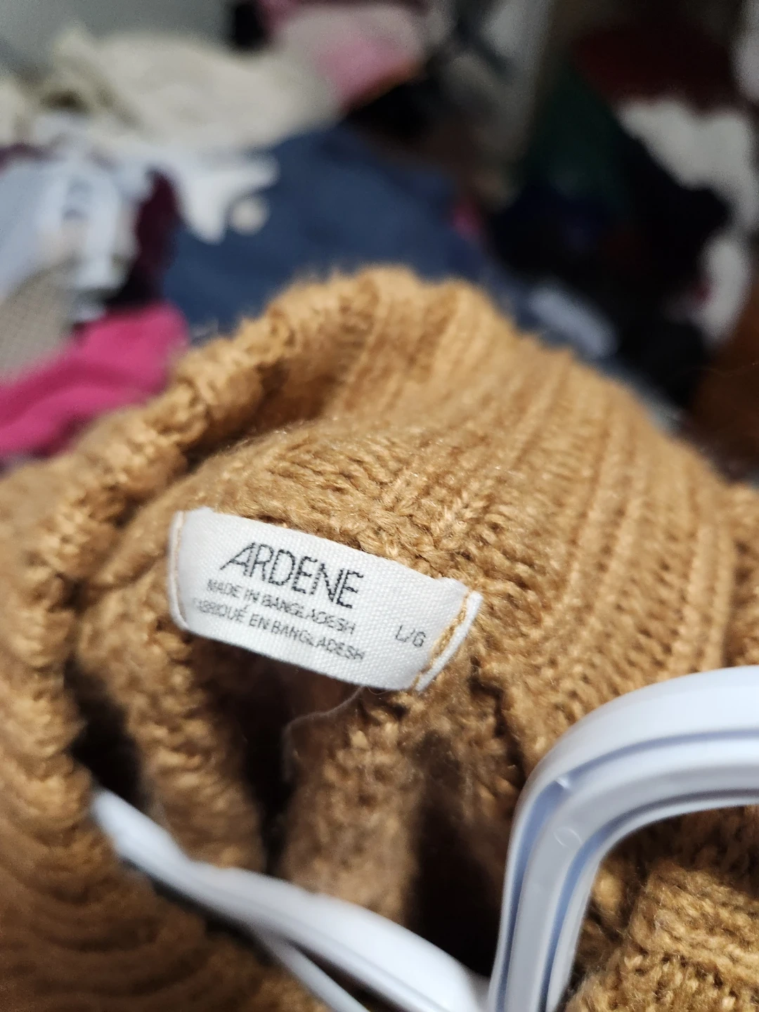 Cozy Ardene knit sweater in a lovely neutral tone! It's a size large and features a comfortable, slightly cropped fit. Perfect for layering on chilly days!