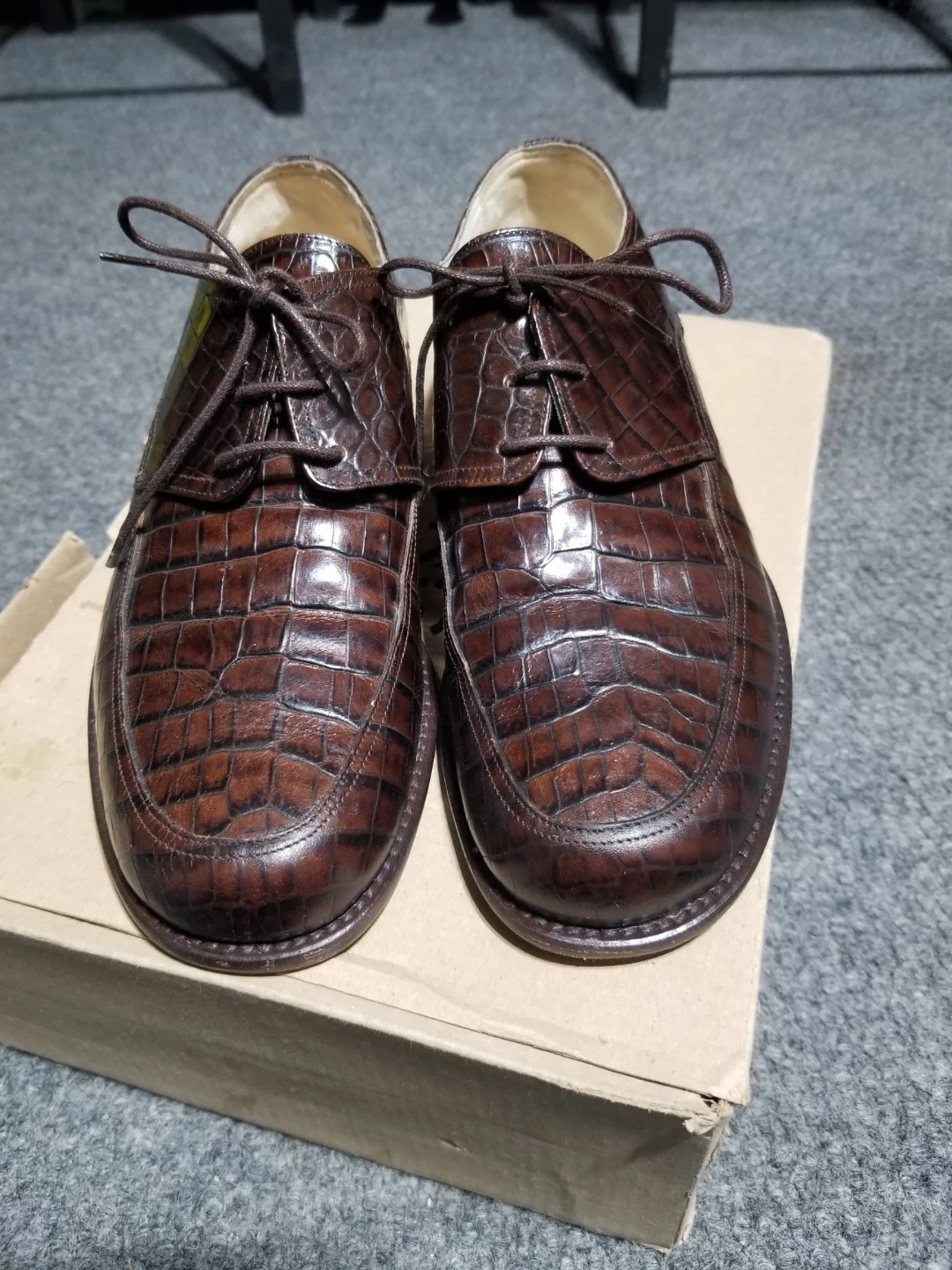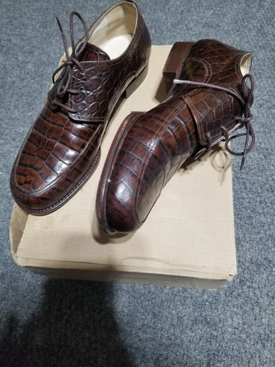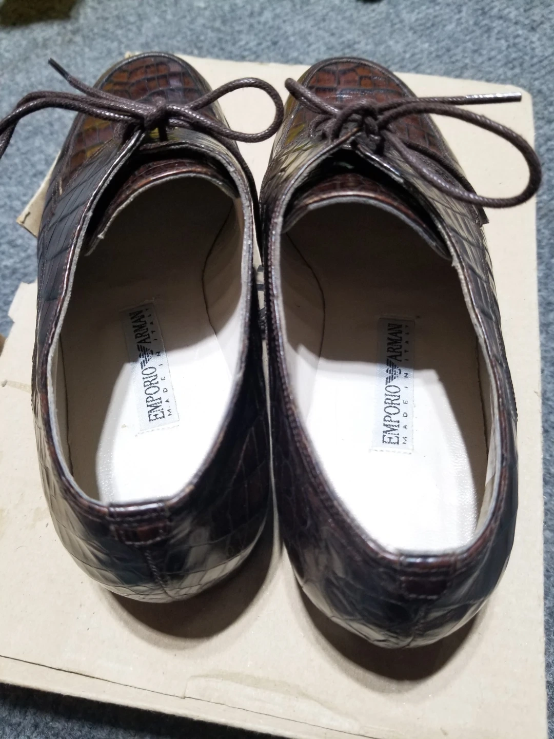 Selling a pair of women's Emporio Armani shoes in a beautiful and unique brown crocodile leather. They are marked as a size 6. The soles are marked as 'Vero Cuoio' and 'Made in Italy'. They've only been worn a handful of times but do not show it. Pick up only please