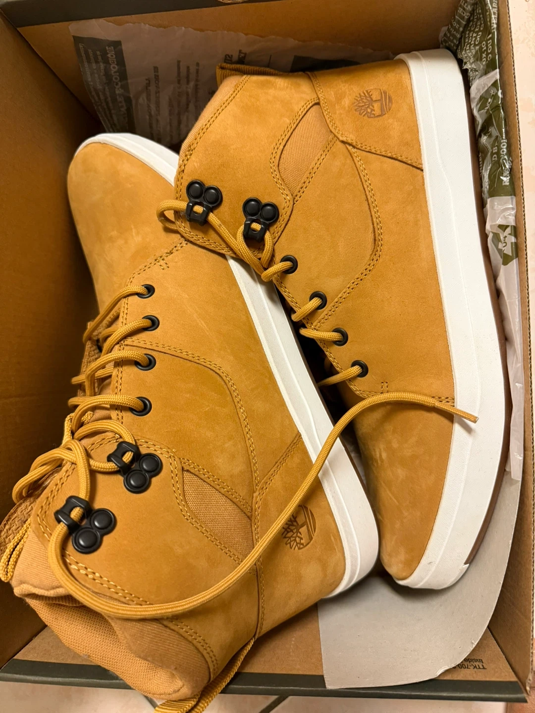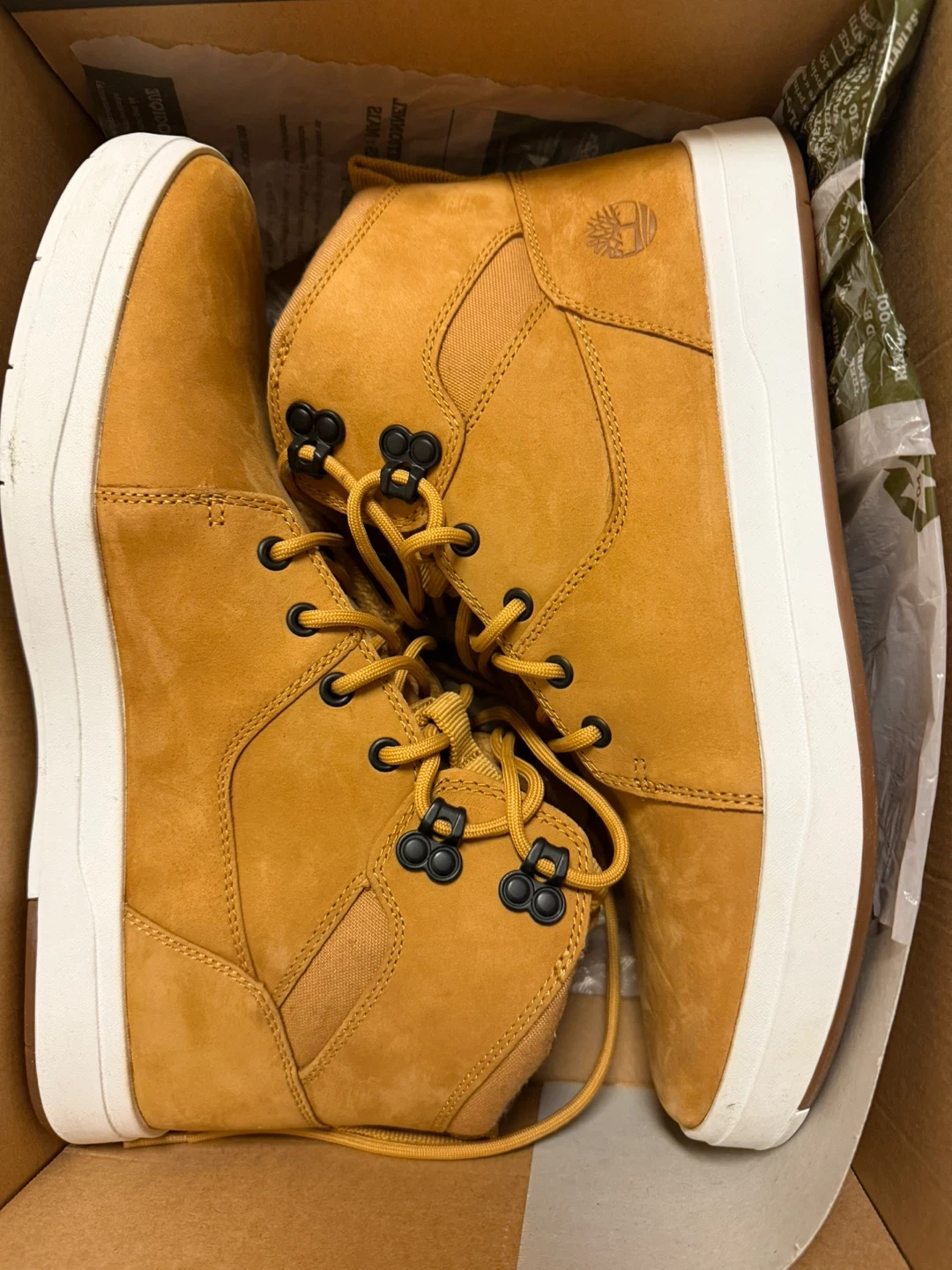 Timberland chukka boots in a classic tan nubuck leather. They're size 10. Comes with original box.