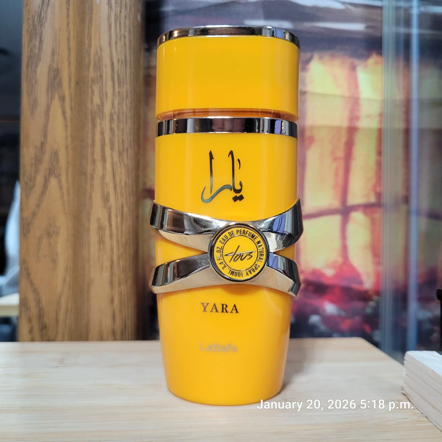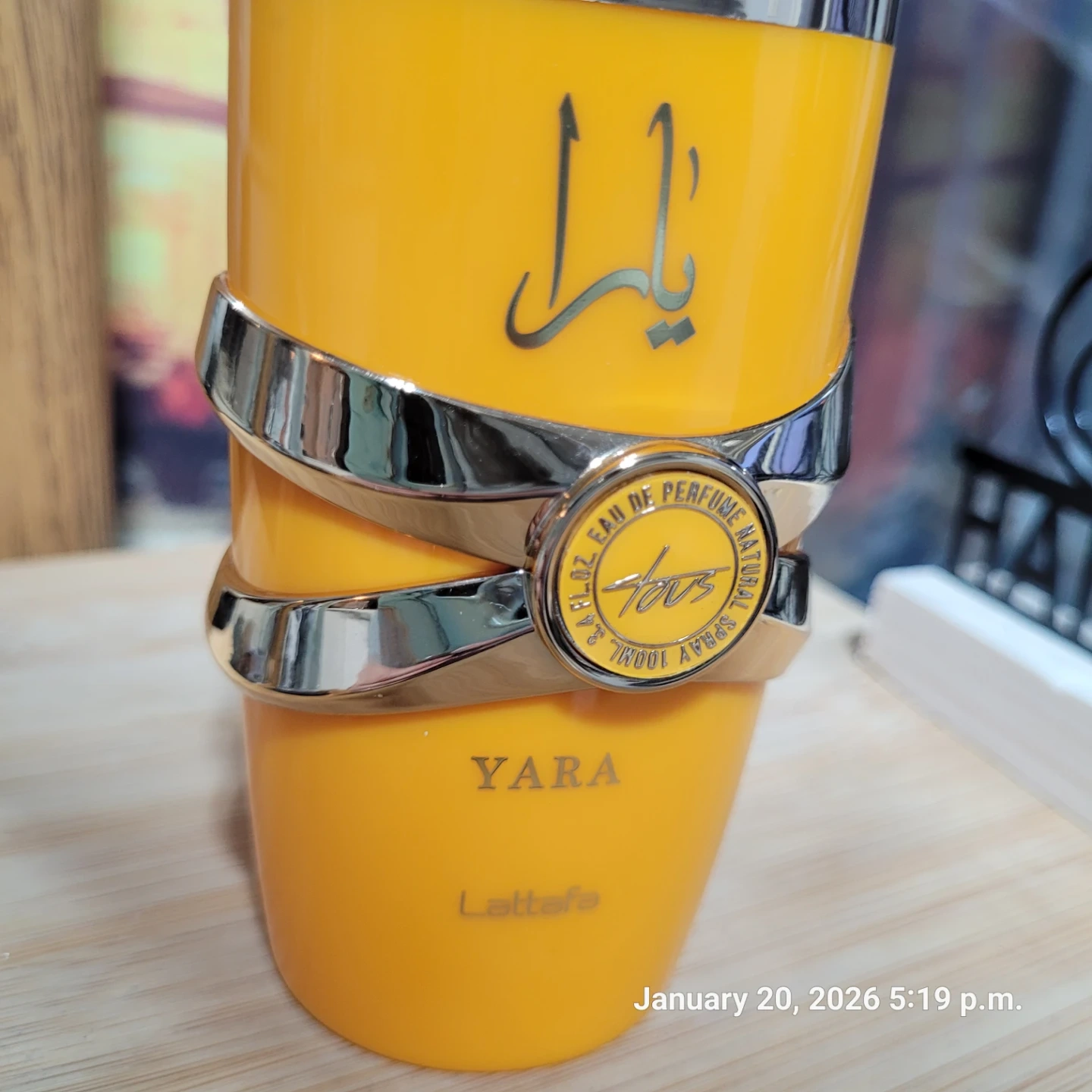 Selling a Lattafa Yara Tous Eau de Parfum, 100ml spray. It's a vibrant yellow bottle with a unique design. Perfect for adding a touch of sunshine to your day! Used a few sprays. Full bottle.