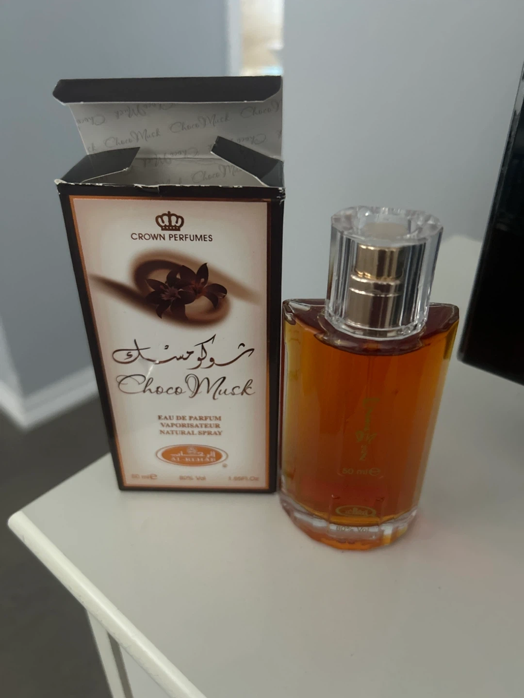 This is Al Rehab Choco Musk Eau de Parfum Spray. It comes in a 50 ml bottle. The fragrance is a popular choice for its unique scent profile.