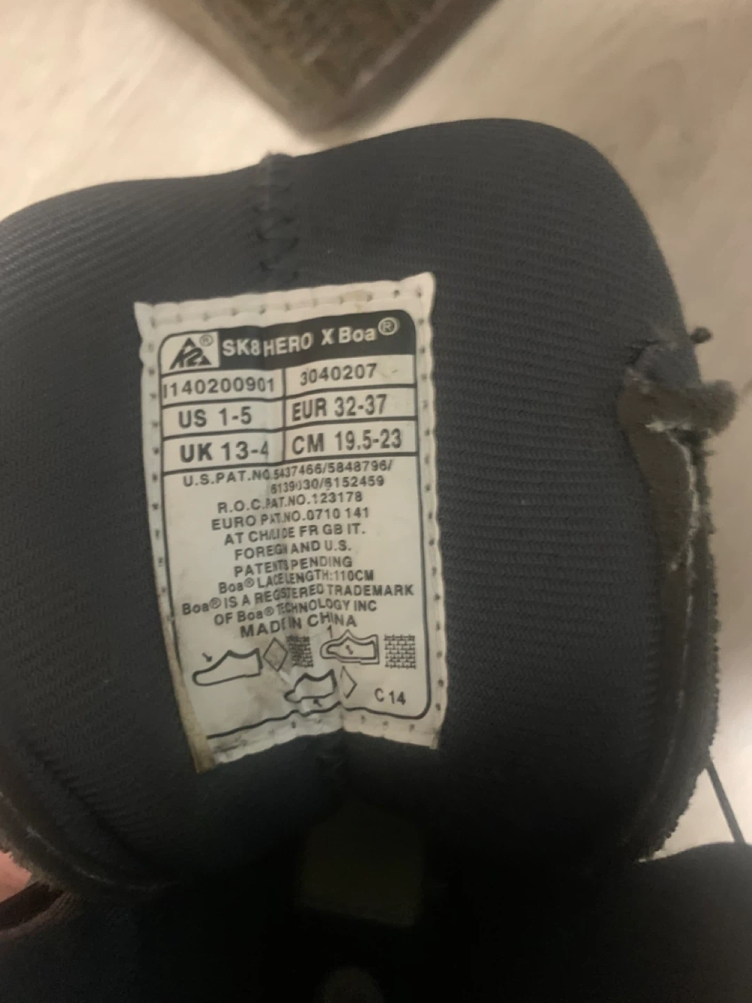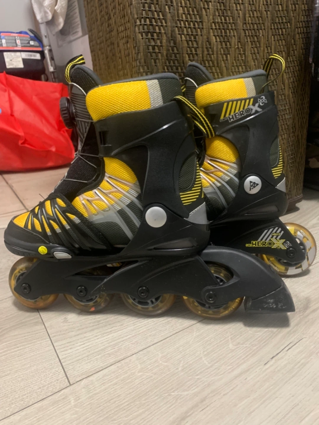Selling a pair of K2 Sk8 Hero X Boa inline skates. They're in good condition and ready for some fun! The size is US 1-5, UK 13-4, EUR 32-37, and CM 19.5-23. They feature the Boa closure system for a secure and comfortable fit