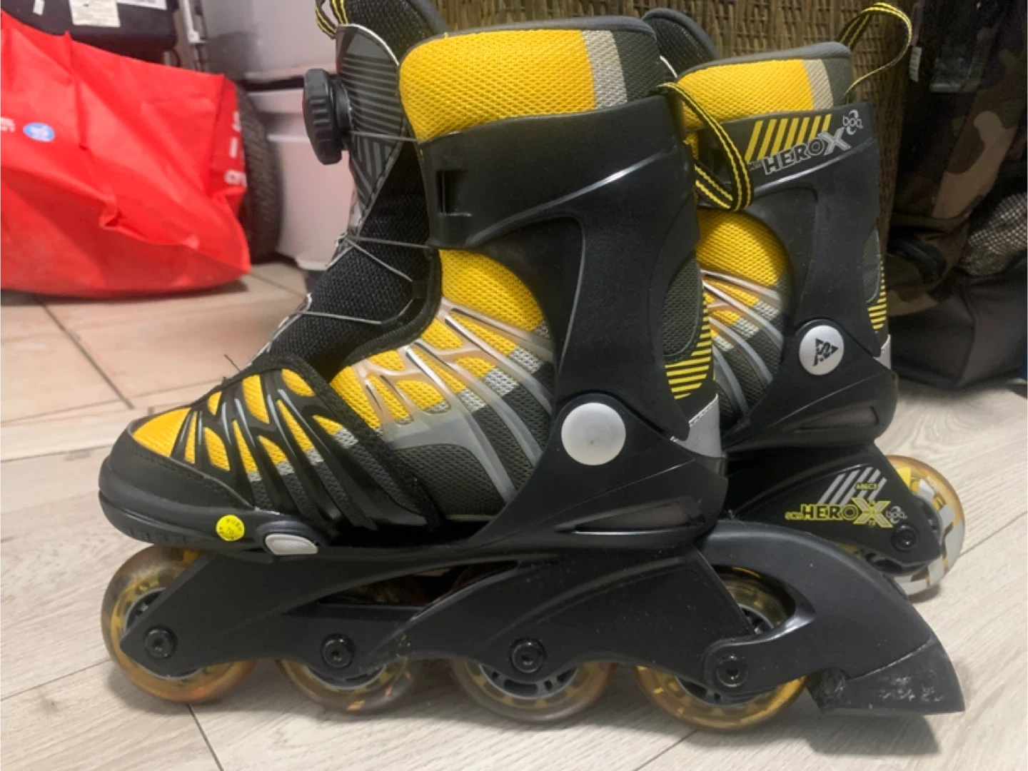 Selling a pair of K2 Sk8 Hero X Boa inline skates. They're in good condition and ready for some fun! The size is US 1-5, UK 13-4, EUR 32-37, and CM 19.5-23. They feature the Boa closure system for a secure and comfortable fit