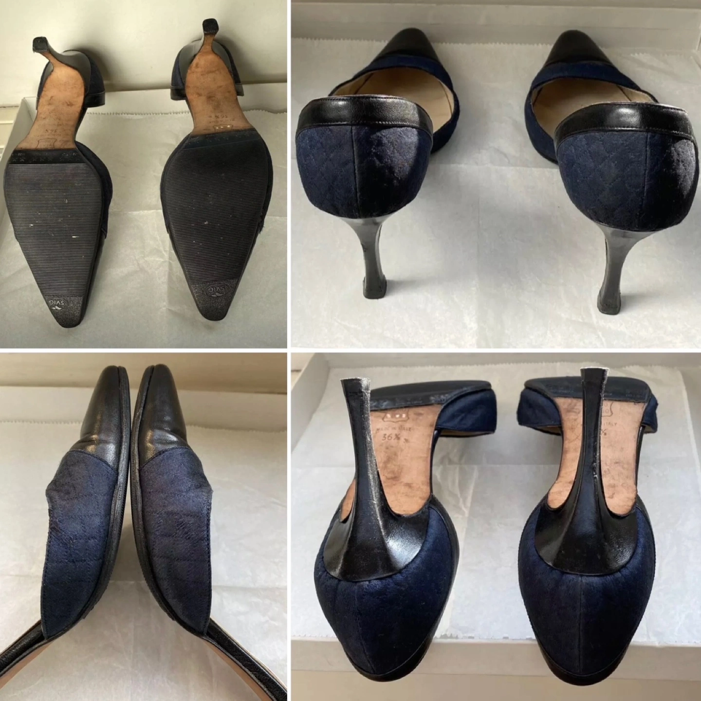 Venessa Noel Pointed Toe Black Heels Shoes Sz 36.5 / US 7.5 Stiletto Made in Italy