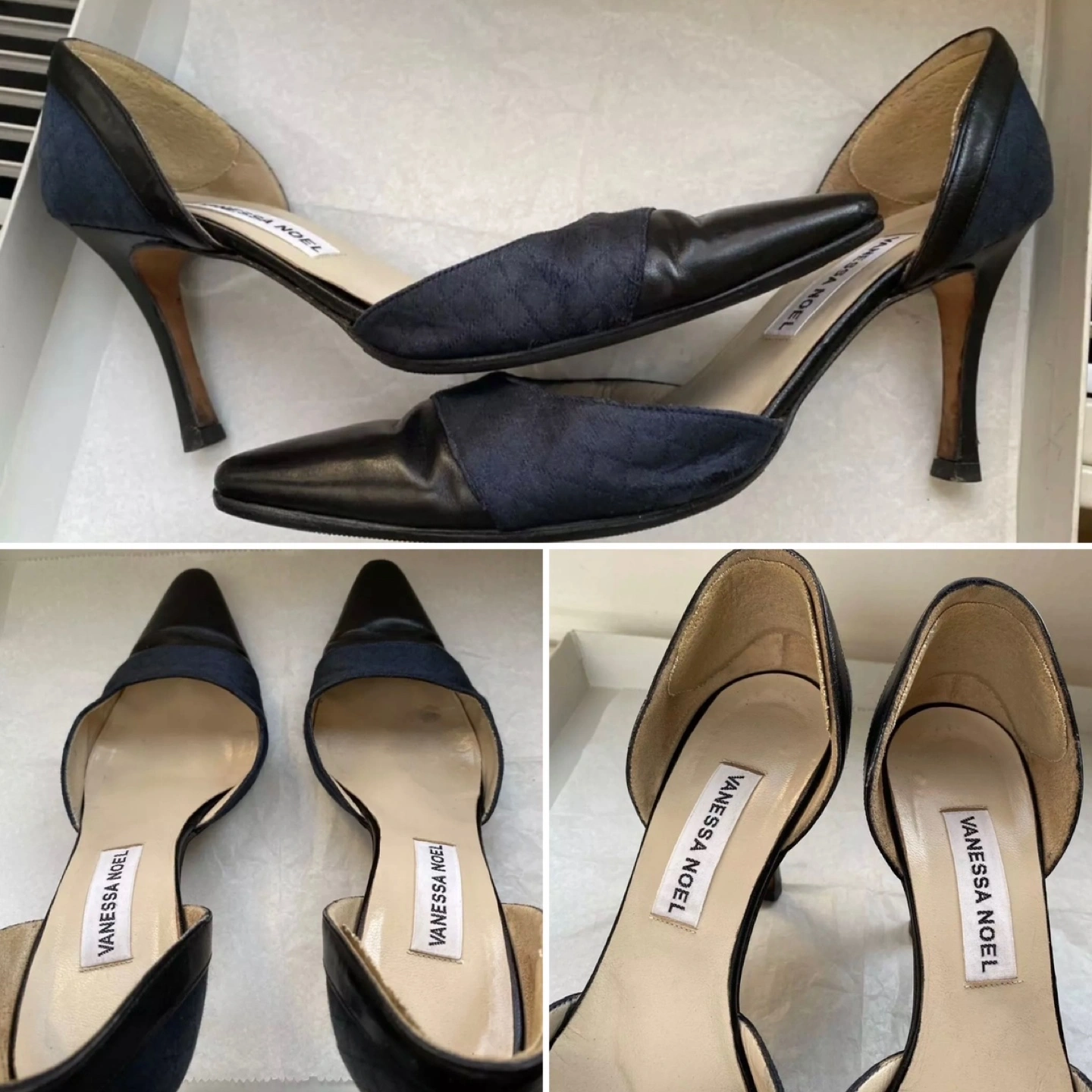 Venessa Noel Pointed Toe Black Heels Shoes Sz 36.5 / US 7.5 Stiletto Made in Italy