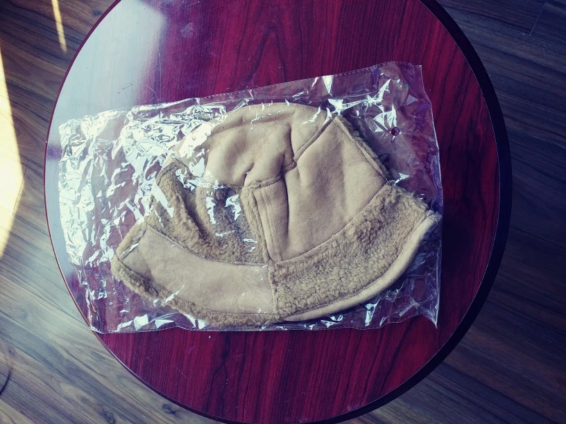 Brand new bucket hat, still in its original packaging! It's a lovely beige colour with a soft, cozy texture. Perfect for keeping your head warm and stylish during cooler weather.