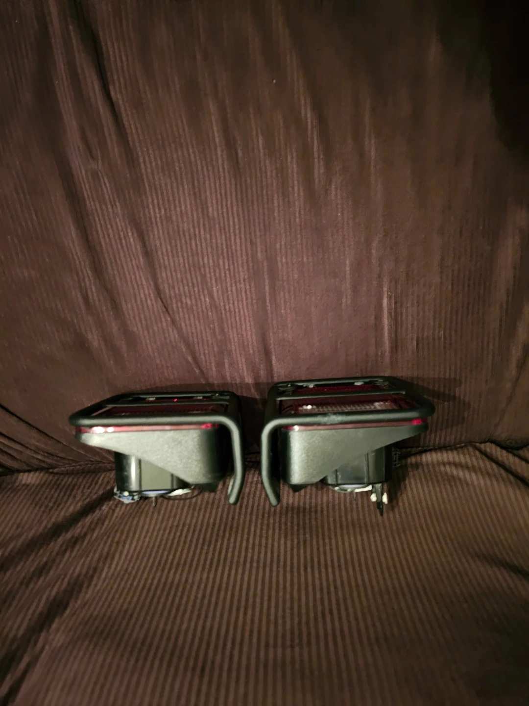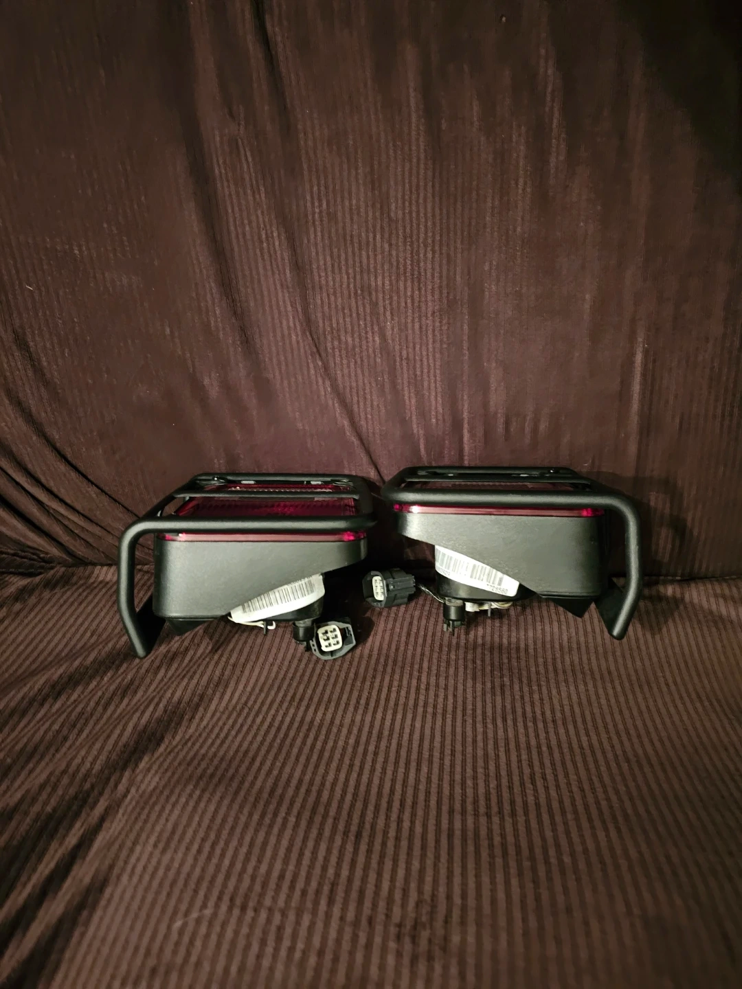 Selling a pair of tail lights for a 2018 Jeep Wrangler Unlimited Sahara. These are the rear lights for the vehicle. They come with the protective grilles. They're made of durable plastic.