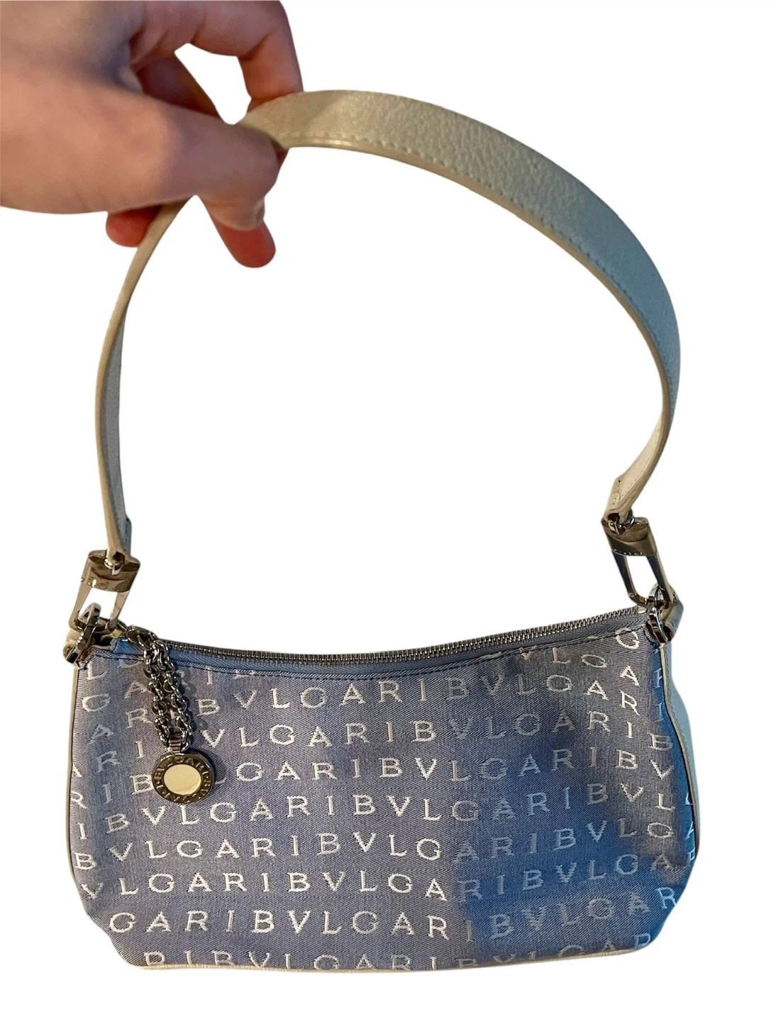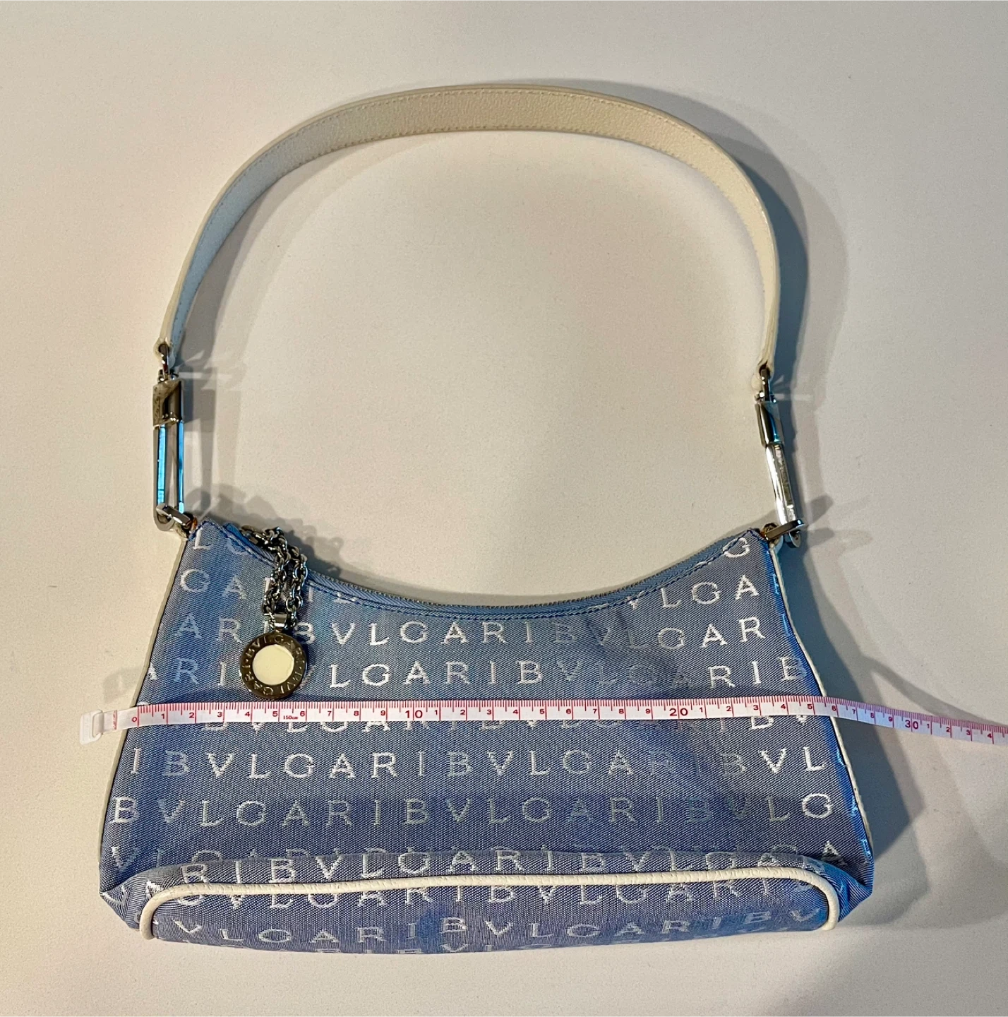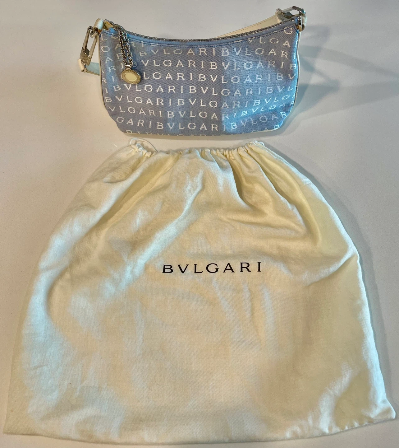 π BVLGARI Light Blue (denim) Canvas Shoulder Bag_Authentic π