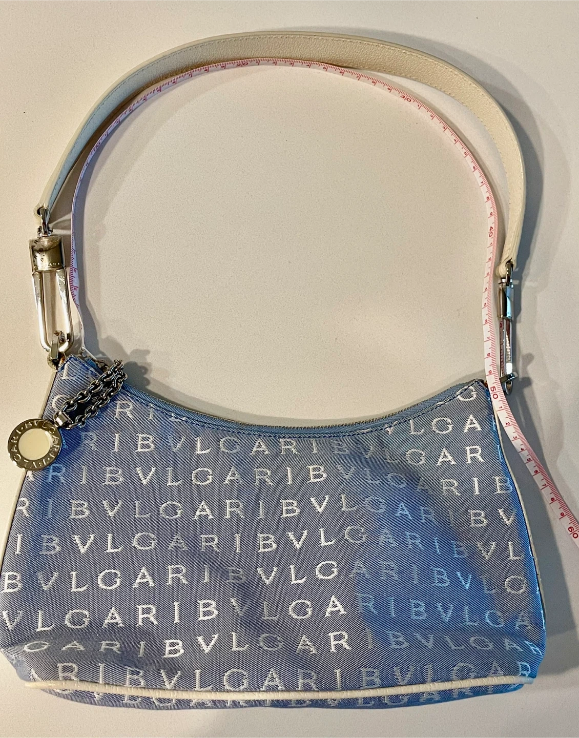 π BVLGARI Light Blue (denim) Canvas Shoulder Bag_Authentic π