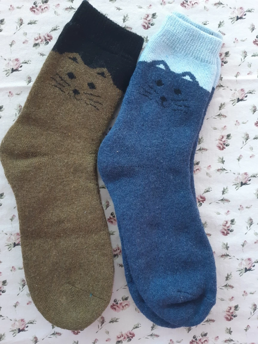 2 pairs cute cat woolen blend socks - US 5 - 10 Women's