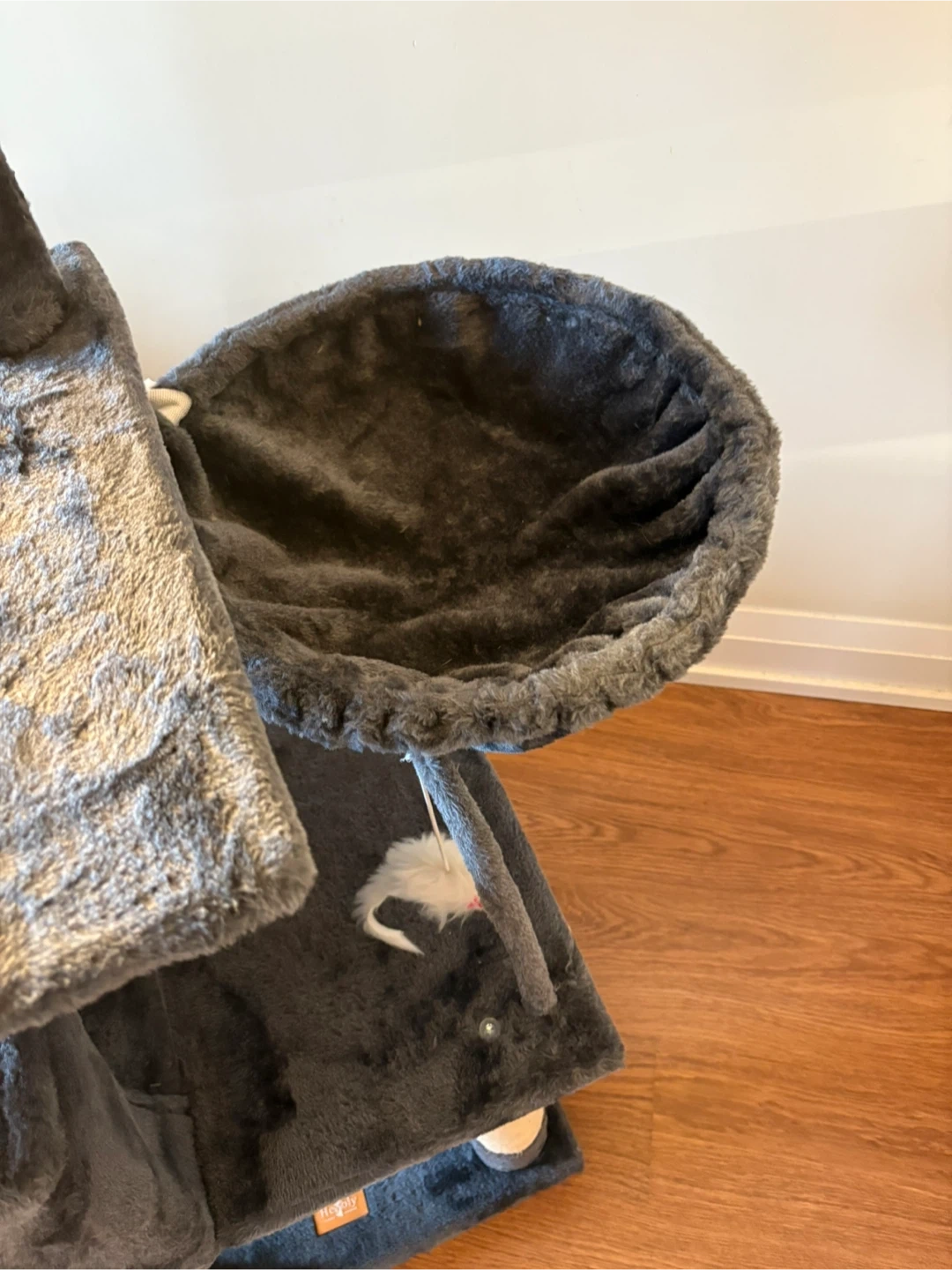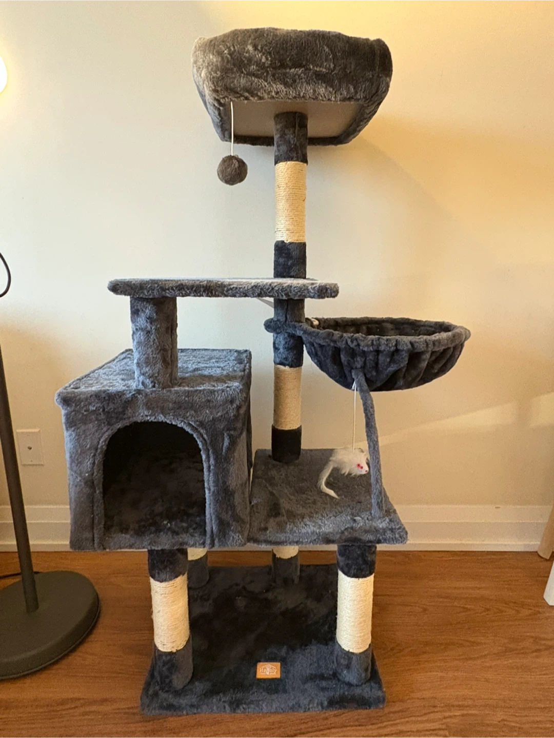 Grey Cat Tree with Condo and Dangling Toys