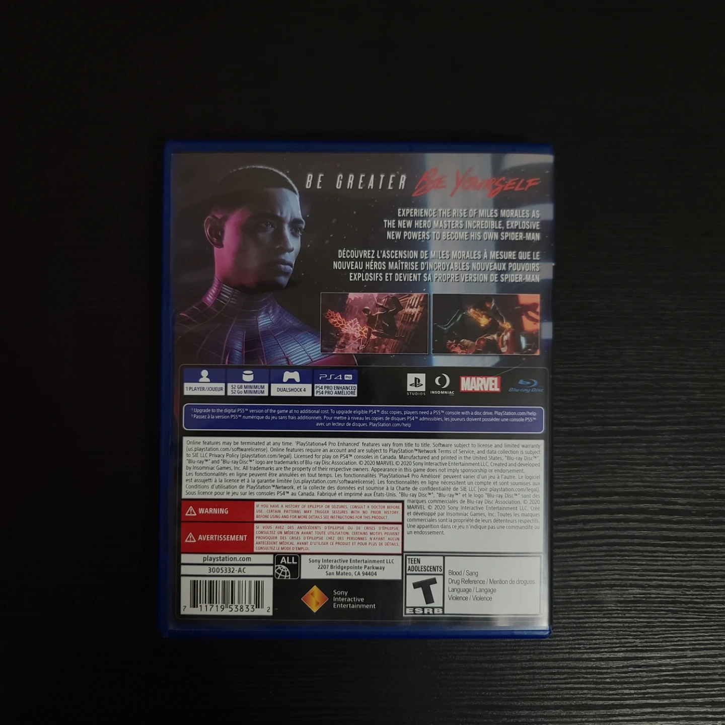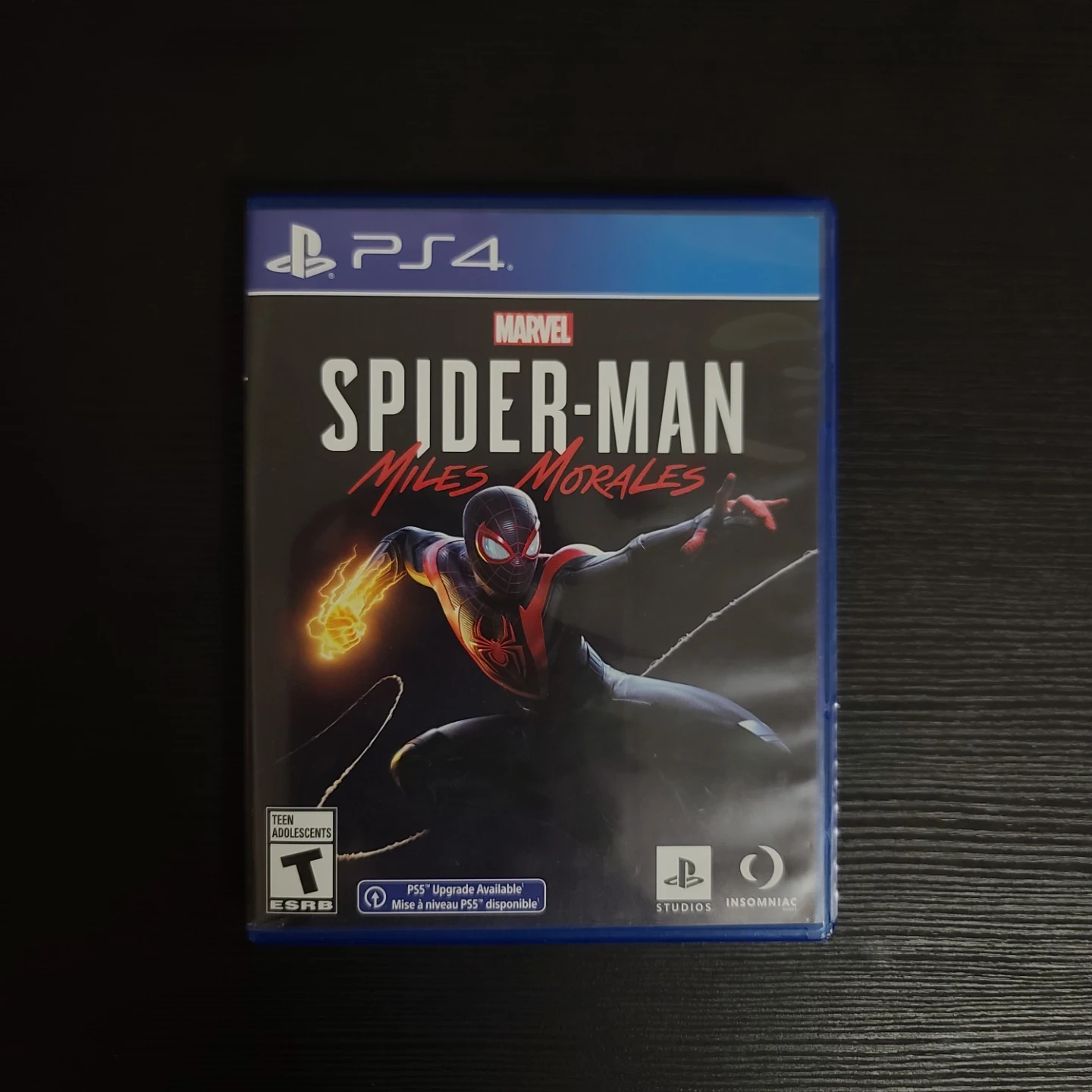 This is the PlayStation 4 version of Marvel's Spider-Man: Miles Morales. It's rated T for Teen by the ESRB.
