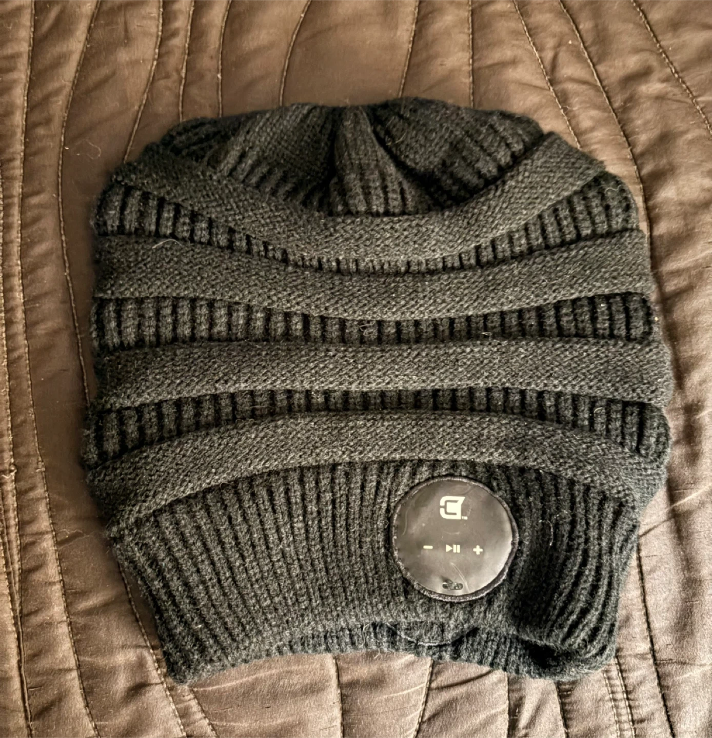 Selling a cozy black bluetooth beanie! It's perfect for keeping your head warm while listening to your favourite tunes. The beanie has built-in controls for easy access to music playback. Stay warm and connected!